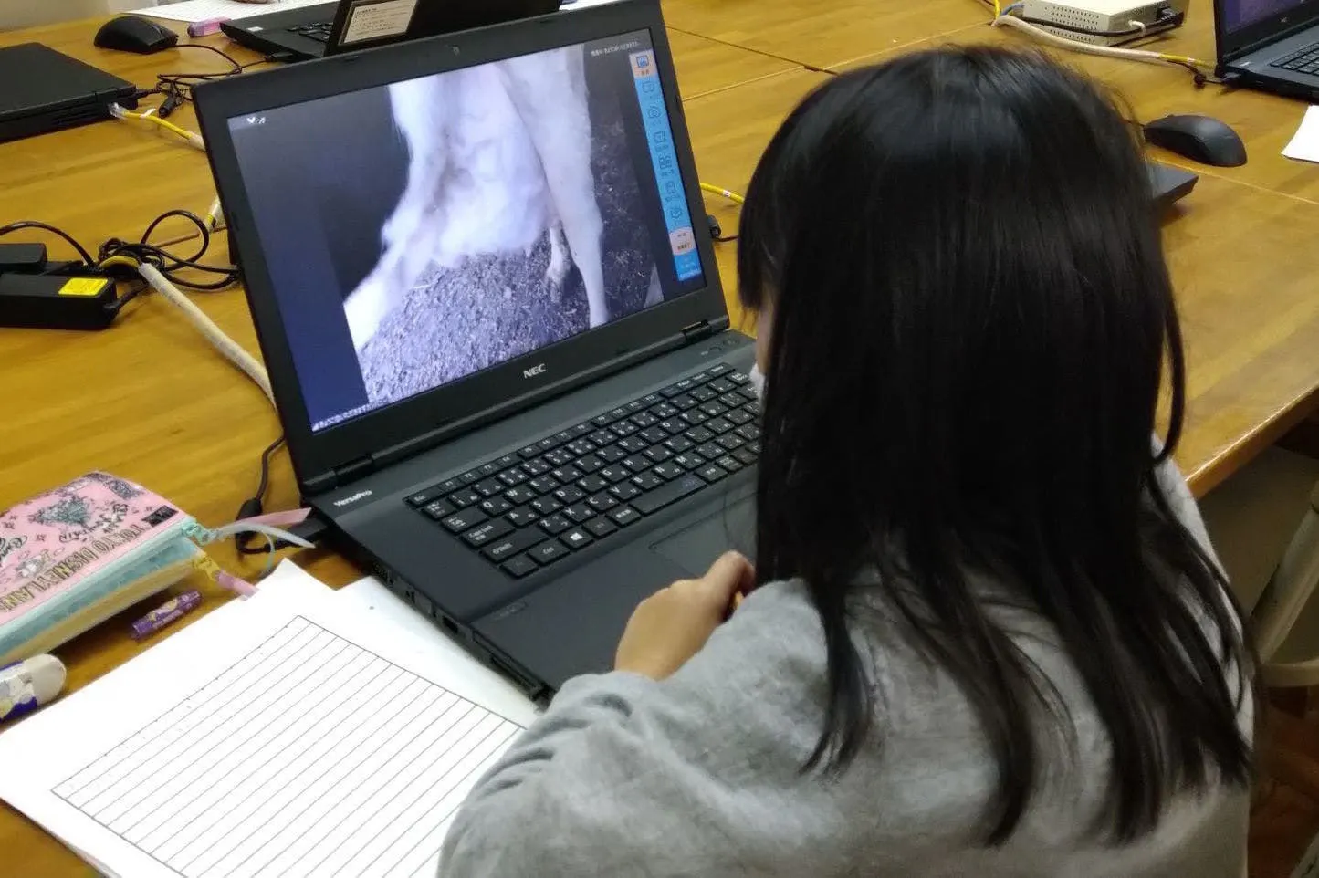 牧場の案内は、防疫対策の難しさや家畜のストレスの関係から実施を見合わせていました。でも、オンラインだからこそ見学できるのでは!?と、酪農の案内にも挑戦。今までは畑中心だったので、研修からのスタートです。搾乳の様子や通信環境の悪い室内設備等を伝えるために、動画の撮影・編集作業も行います。