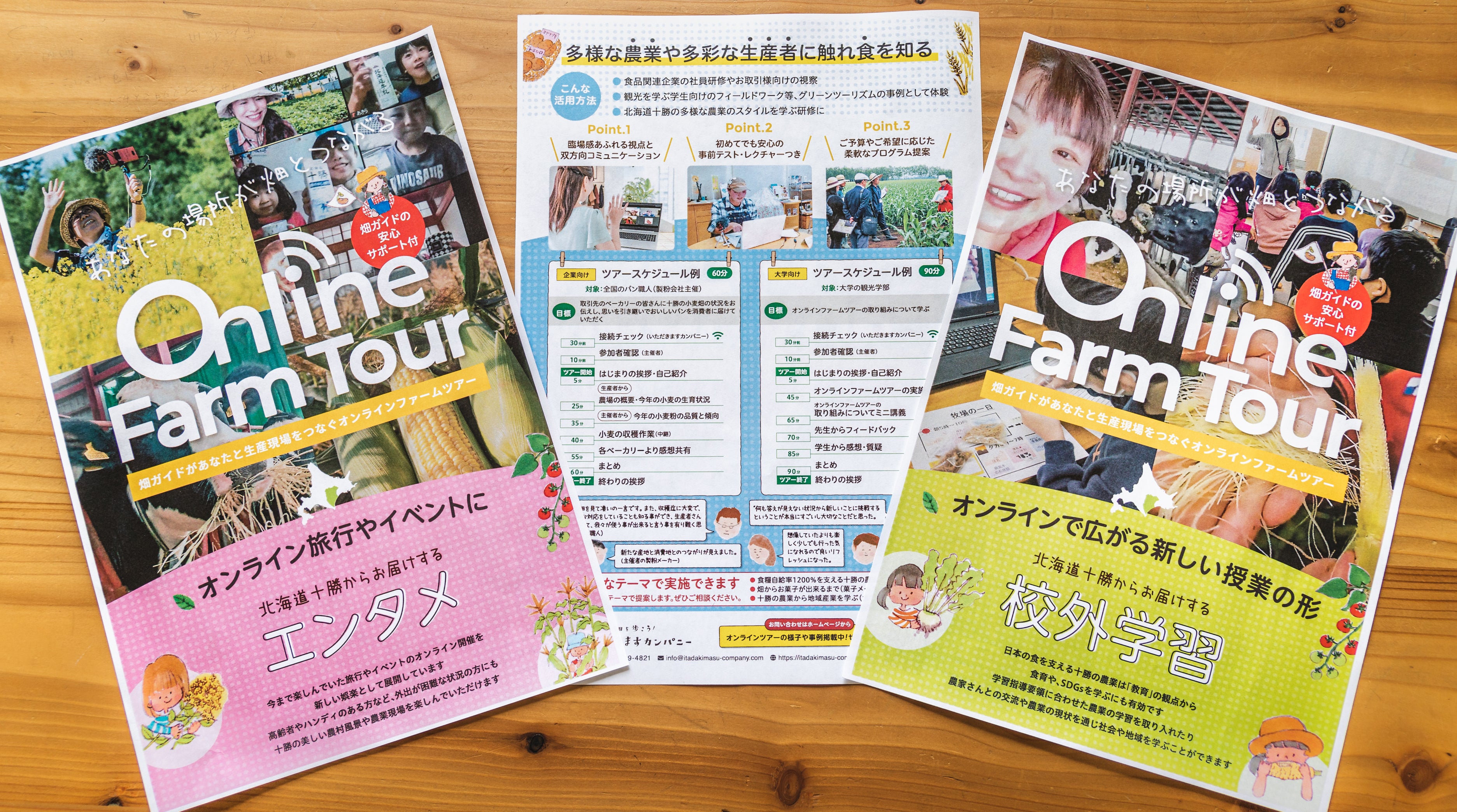畑作と畜産どちらもできるように、「オンラインファームツアー」と命名し、2021年3月にチラシとホームページが完成しました。