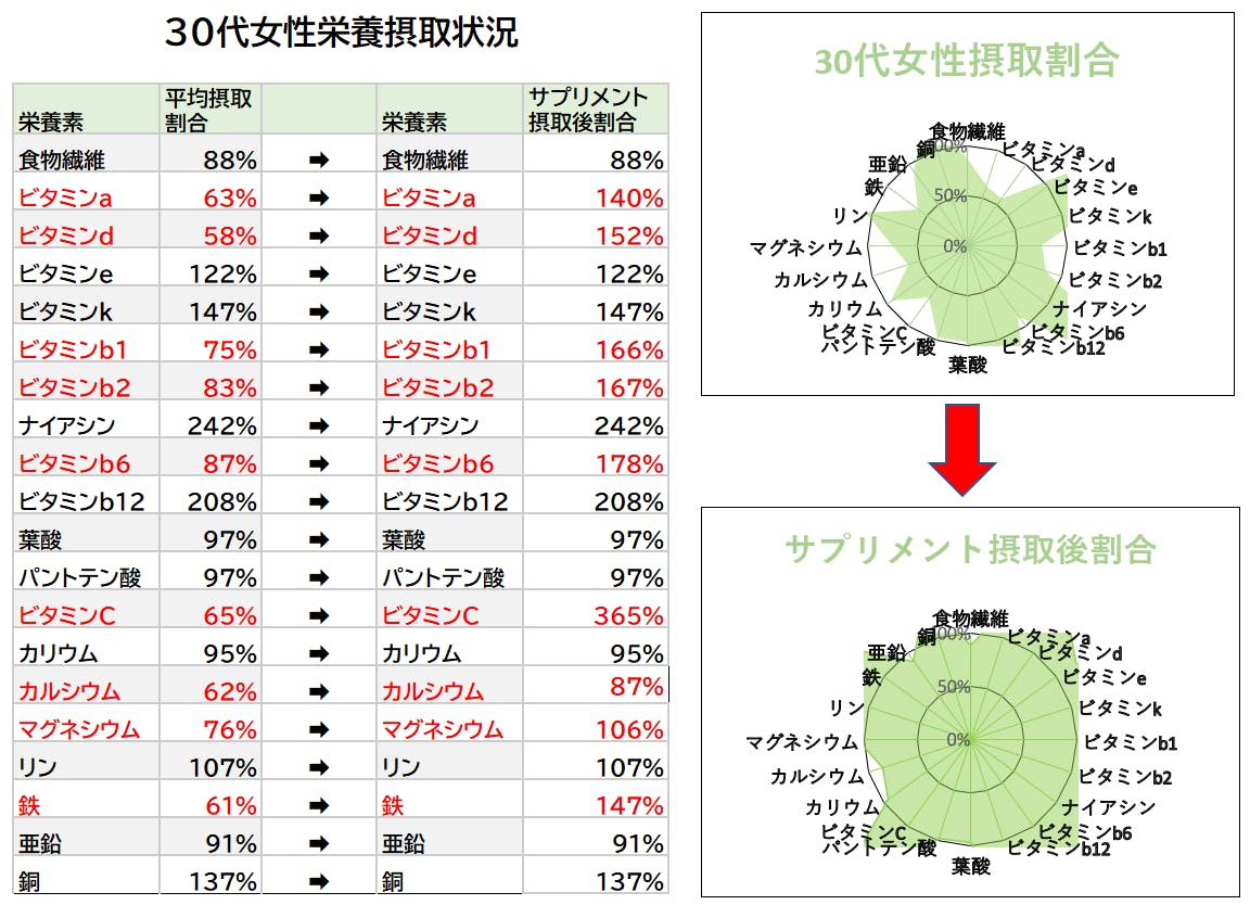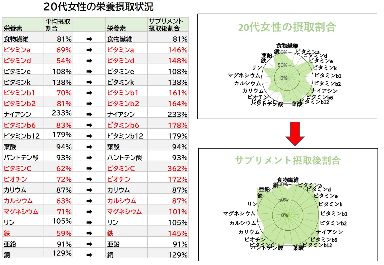 食事で充分にとることができない栄養素を認識すること、それらを満たすこと、この二つの実現により