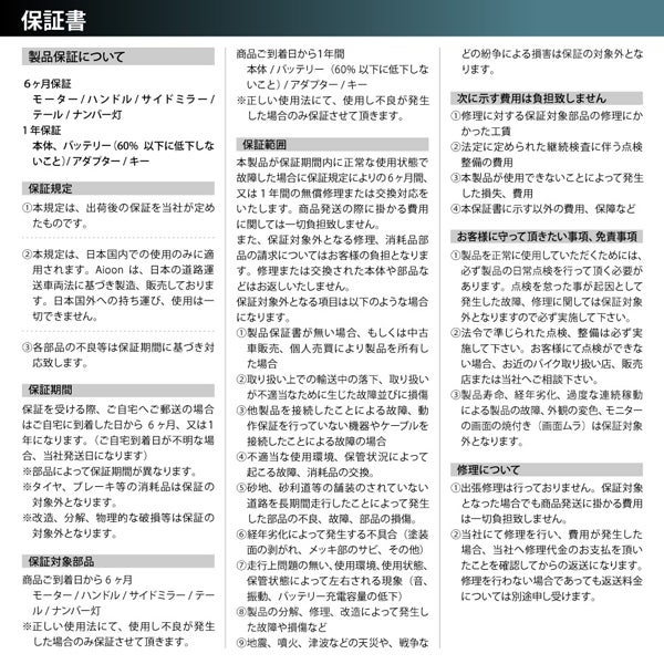 "購入後も安心してご利用いただけるよう、商品パーツごとに保証期間を設けております。