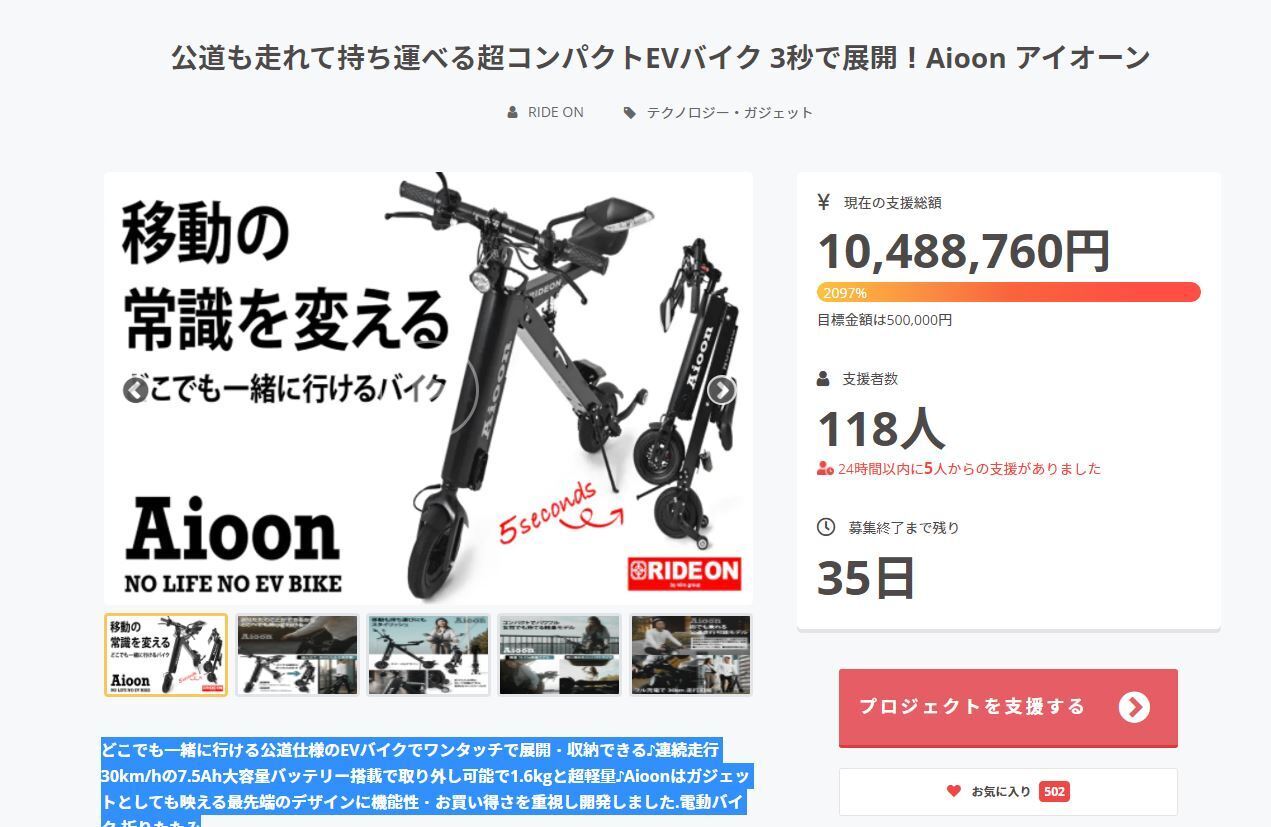 開始2週間にて1000万円達成致しました。お気に入り登録数500名様突破♪