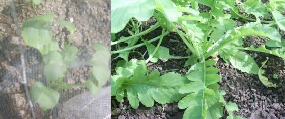 こんにちは。 日本遊的料理研究所 瀬川です。 大根、少しづつタイミングをずらして撒いてます。 左が二葉ちゃんで右が本葉くんです。