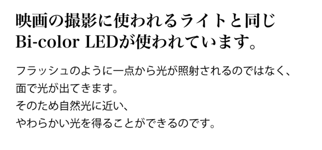 A:BIGSOFTIは、70個のカスタム2-in-1バイカラーLEDを使用して、美しいソフトな拡散光出力を作成します。