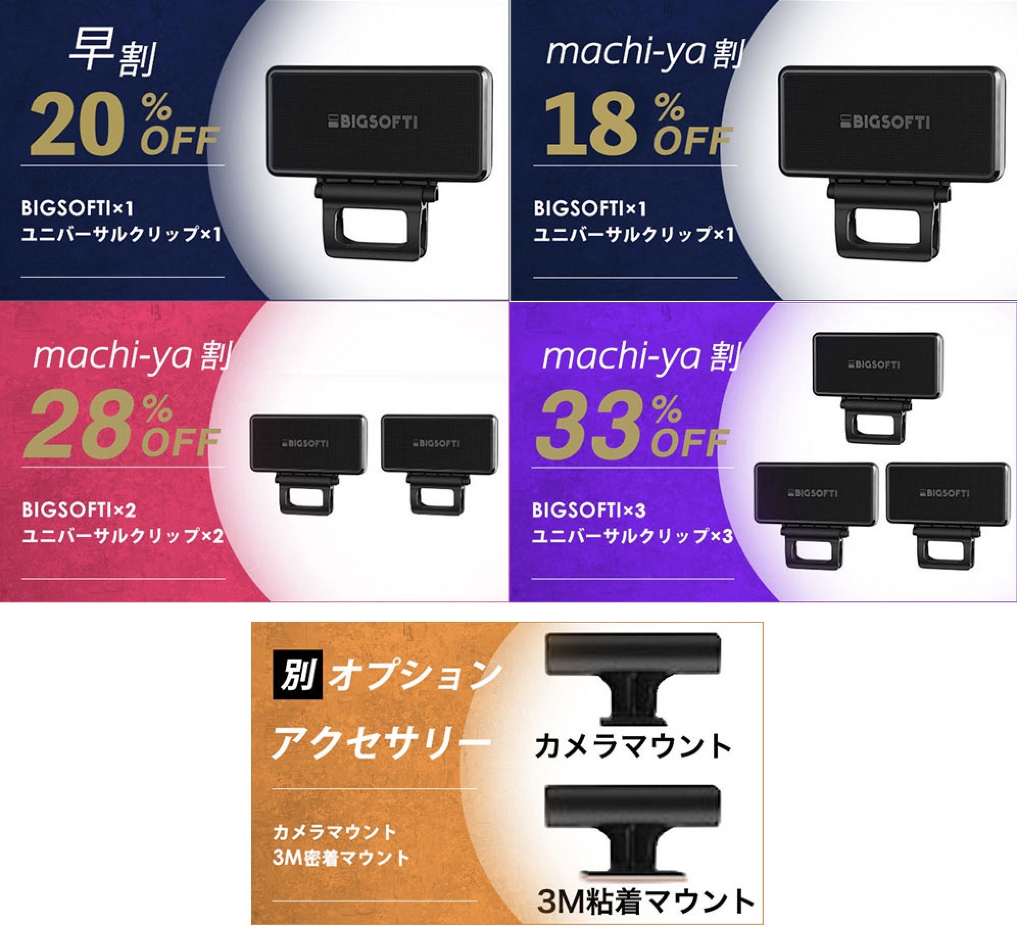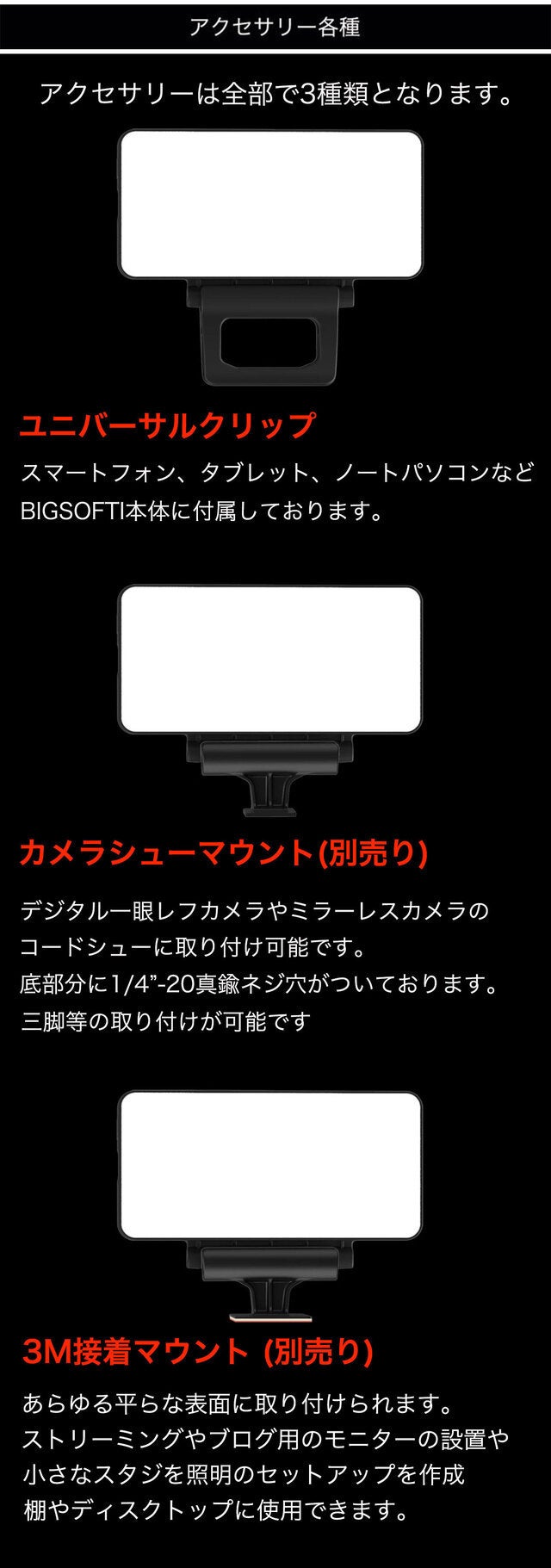 ※全てのBIGSOFTIにユニバーサルクリップが付属します。