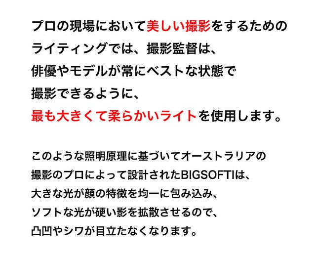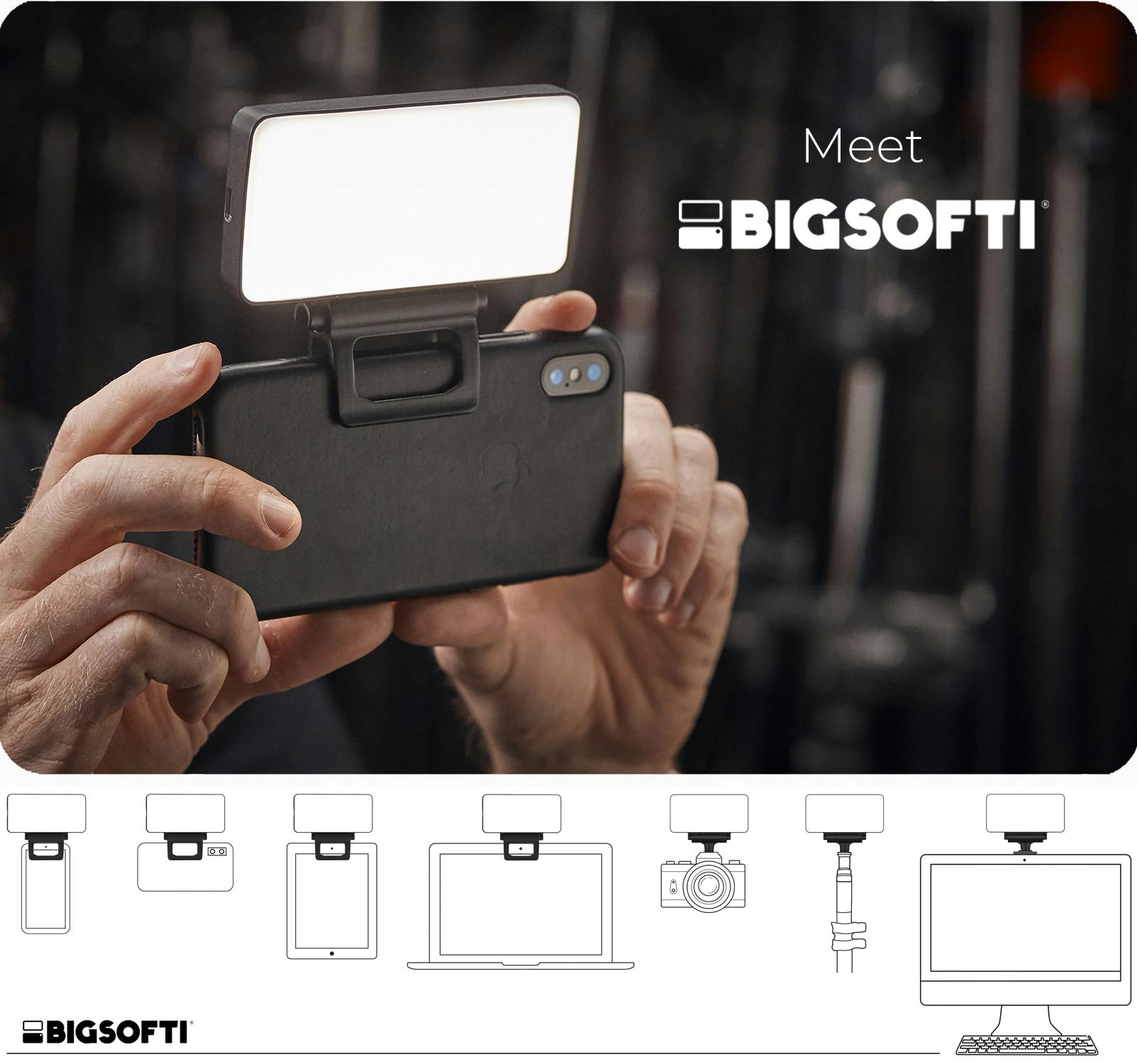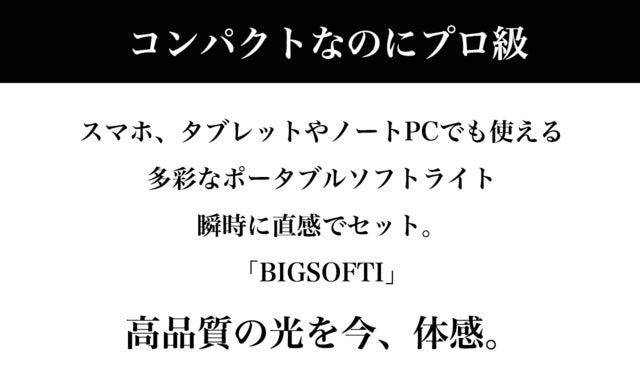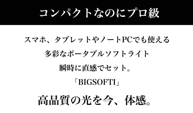 プロの現場のノウハウを詰め込んだポータブルライト『BIGSOFTI』を使えば、写真や動画、ビデオ通話の品質が瞬時に改善されます。