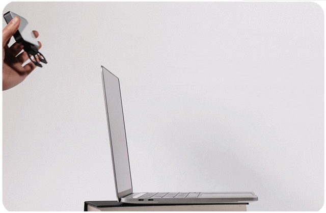 ユニバーサルクリップにあるカットアウトを使用してノートPCのWebカメラの真上に設置できます。MacBookなど薄いモニターの場合、かぶせる形での使用となります。