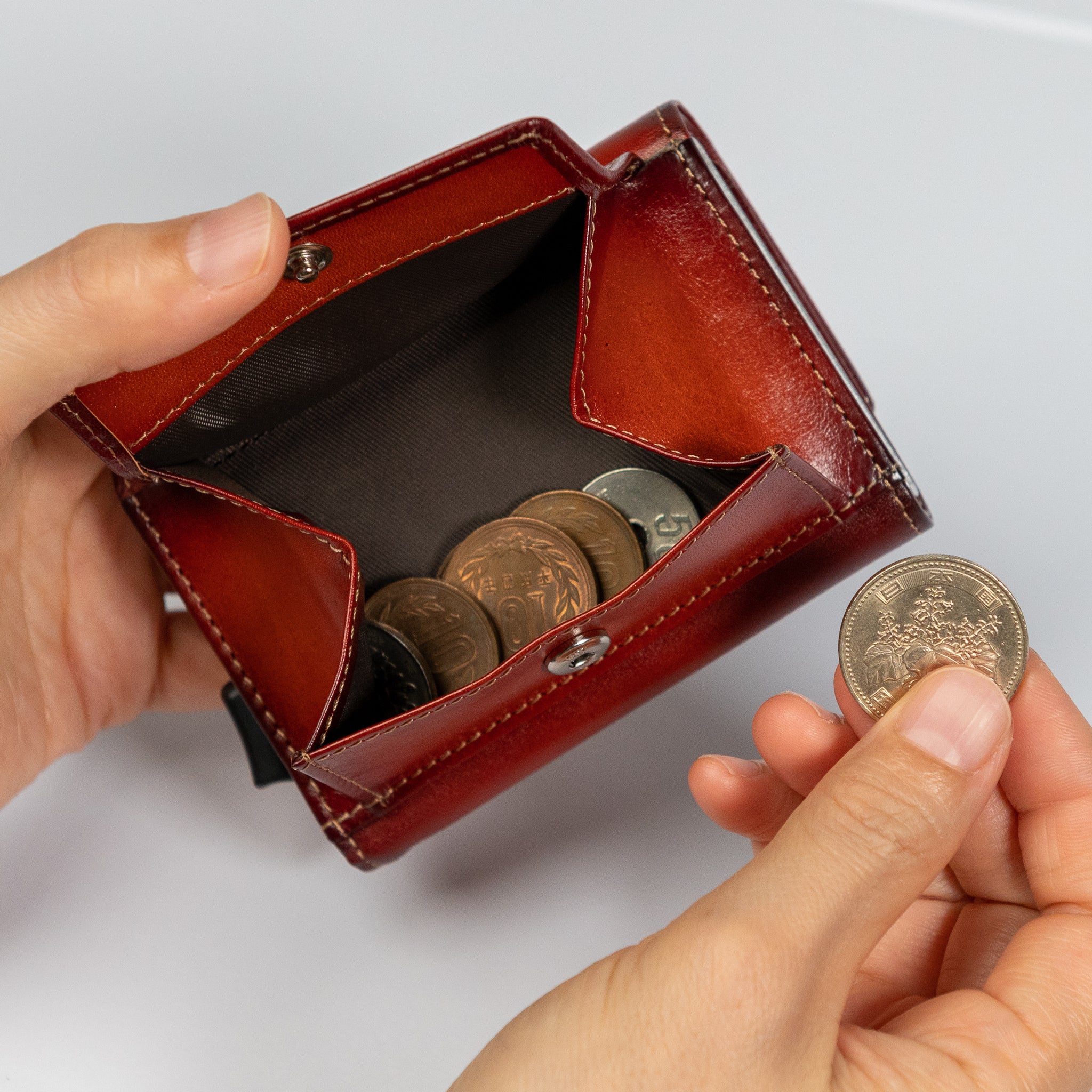 KREISENの アンティーク調コンパクト財布 は 小銭入れを 約8㎝×6㎝ と 底面積を広くとる事により、開口部が広く 小銭の確認が容易で取り出しやすい形状で、混雑時のレジでもスマートに決済が可能!