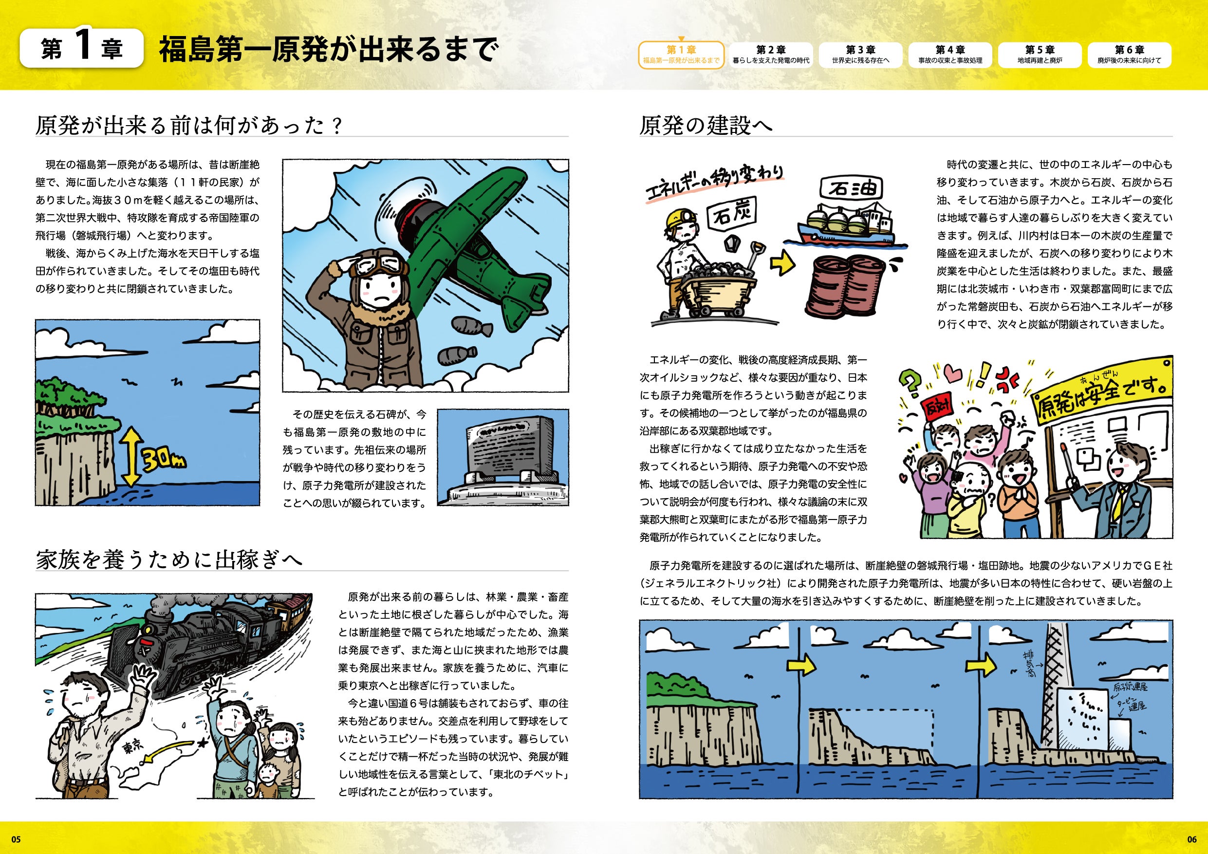 この冊子では、福島第一原発と周辺地域の歴史を扱っています。原発事故前の歴史も含めて未来を考えていくために、東日本大震災と原子力災害が扱われることを、中高生からでもニュートラルに感じられるよう目指しました。