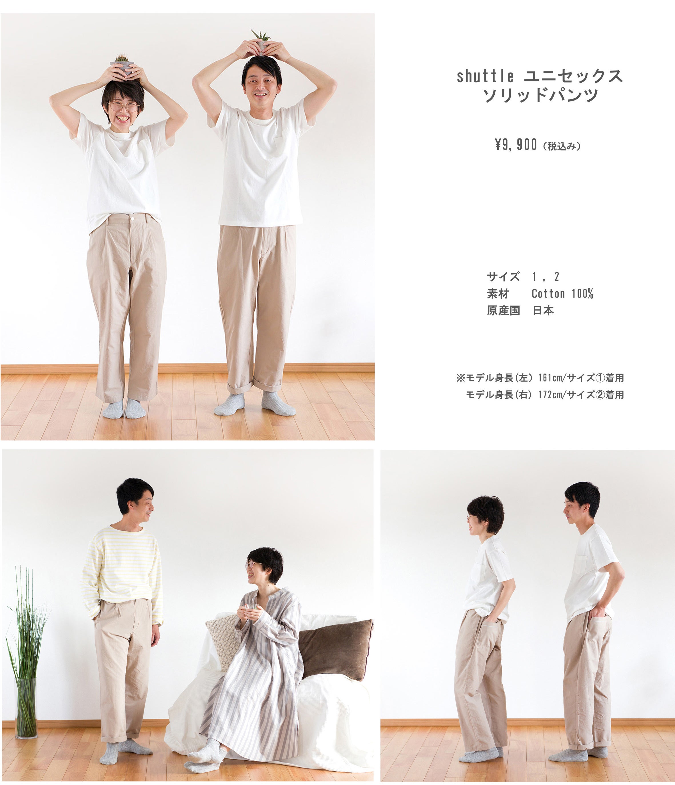 2人で、3人で。同じものを履く嬉しさもあるパンツを2サイズでご用意しました。家でゆっくりはもちろん、ゆったりシルエットなので履いてることを忘れてしまいそうな履き心地。