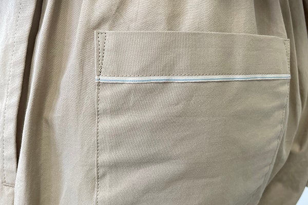この織機で織った証として、アクセントとして。今回パンツの左後ポケット上部に、セルビッチをそのまま使用しています。みなさまに着用いただきます際、ぜひこんな話も思い出していただけますと嬉しいです。