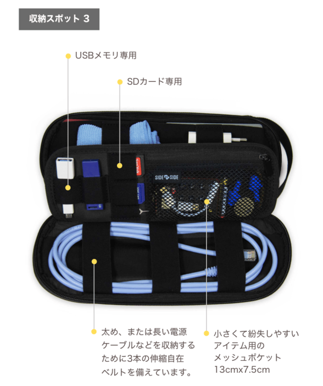 スマホ/PCの周辺機器、モバイルバッテリーやケーブルなど、持ち歩かないといけない小物がたくさんありますよね。カバンに放り込んでおくと絡まったり、ガサゴソ探してもお目当てのアイテムが見つからなかったり。
