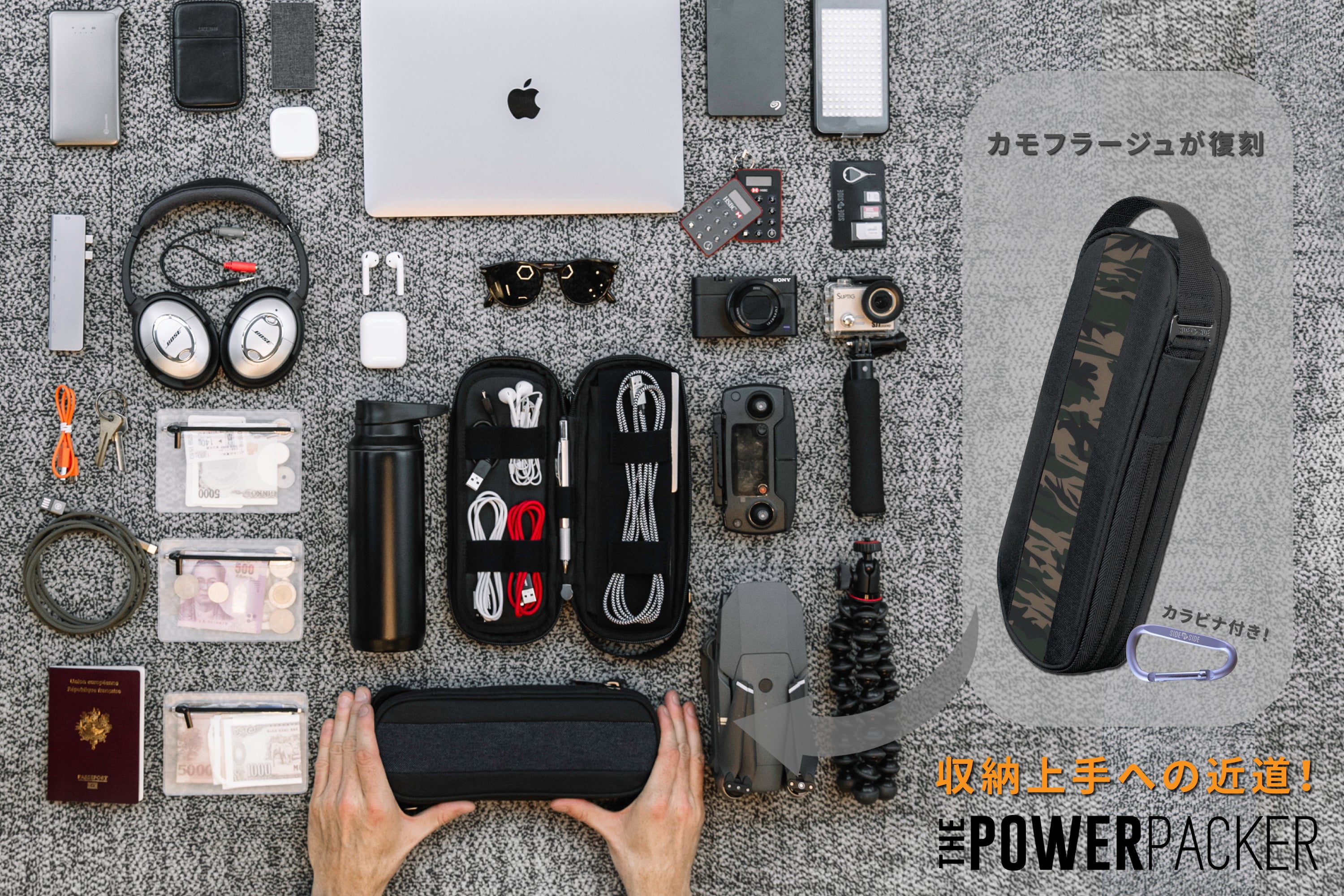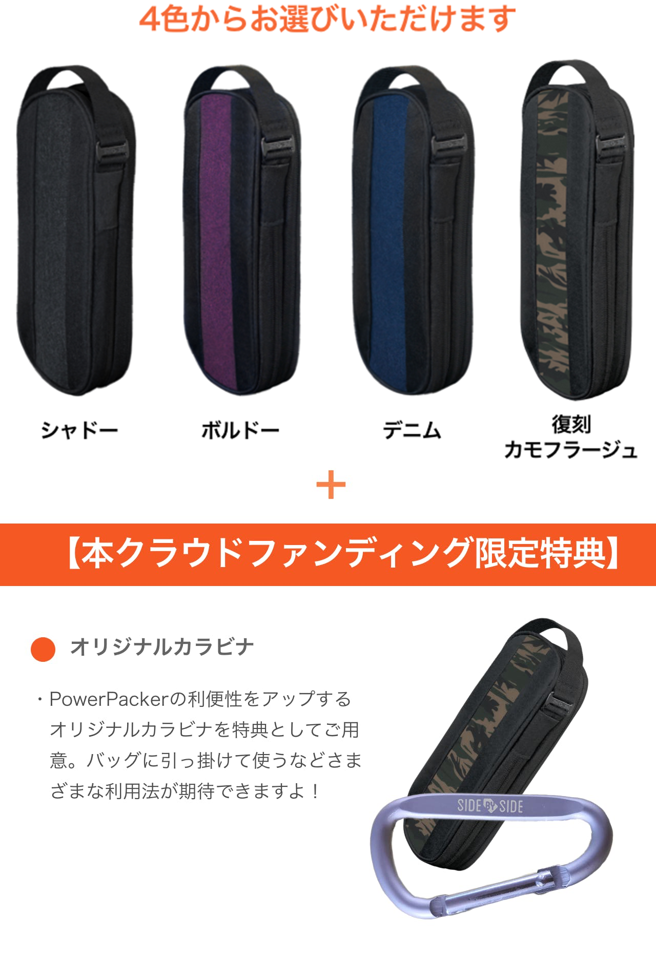 今回は多くのご要望をいただきました復刻カラー、カモフラージュの一般販売に先行し、感謝の気持ちを込めてPower Packerとカラビナのセットを特別価格にて提供させていただきます。