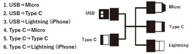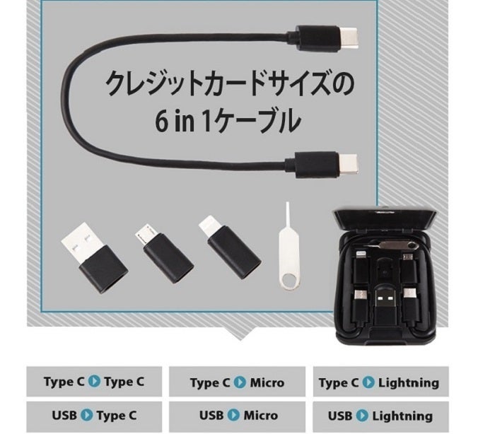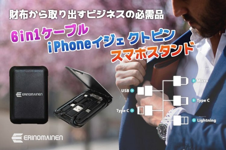 iPhone, Micro, Type C。全てのケーブルをコンパクトに一つに出きれなとても便利ではないでしょうか?そんな要望に応えてerinomainen6 in 1 ケーブルは全てを一つにまとめてみました。