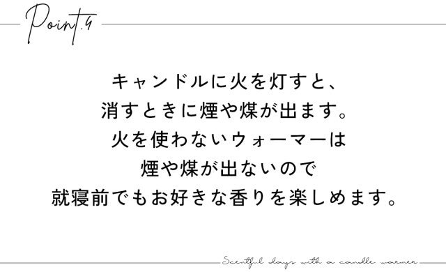 今まで火を使うことに抵抗があってアロマキャンドルを使えなかった方も、安心してご使用いただけます。