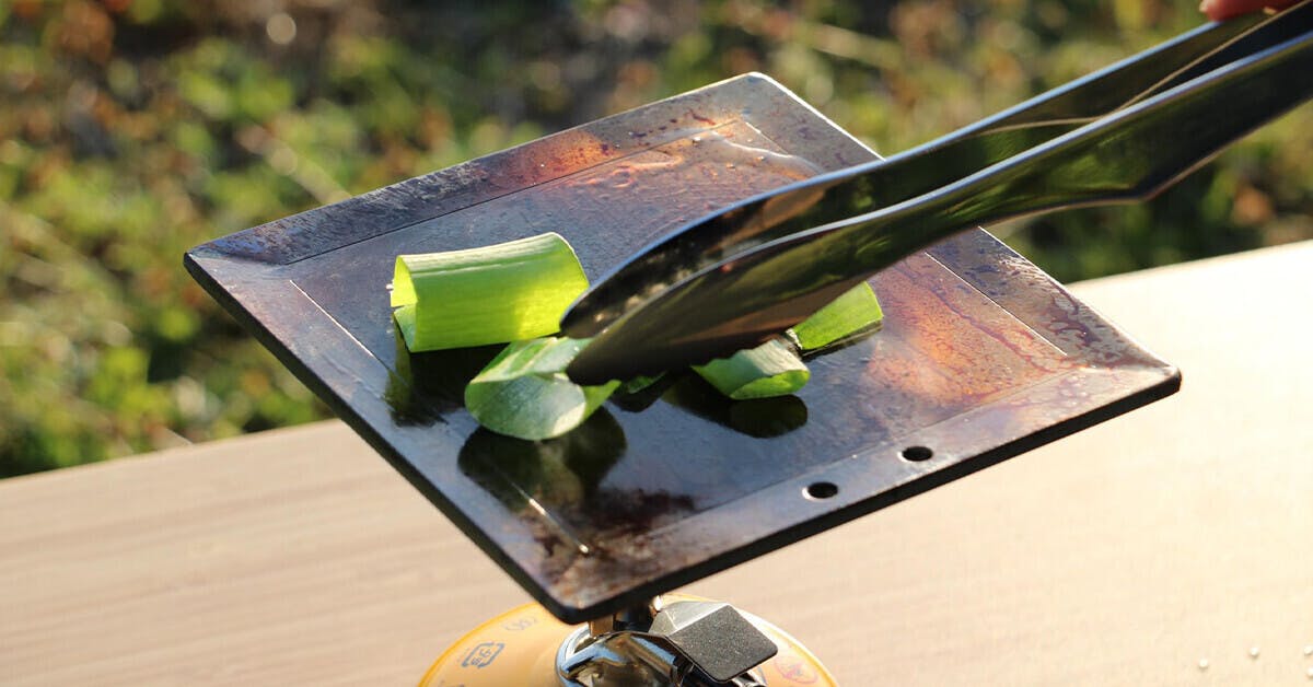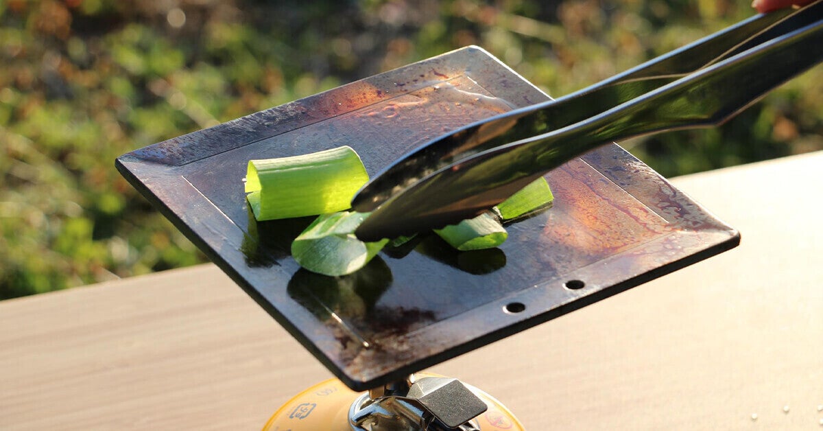 使用前のシーズニングの方法ですが、一度洗剤などを使わず洗浄したあと火にかけて水分を飛ばします。その後オイル(オリーブオイルなど)でコーティングし、野菜(長ねぎなどがおすすめです)を焼くと錆びにくくなります。
