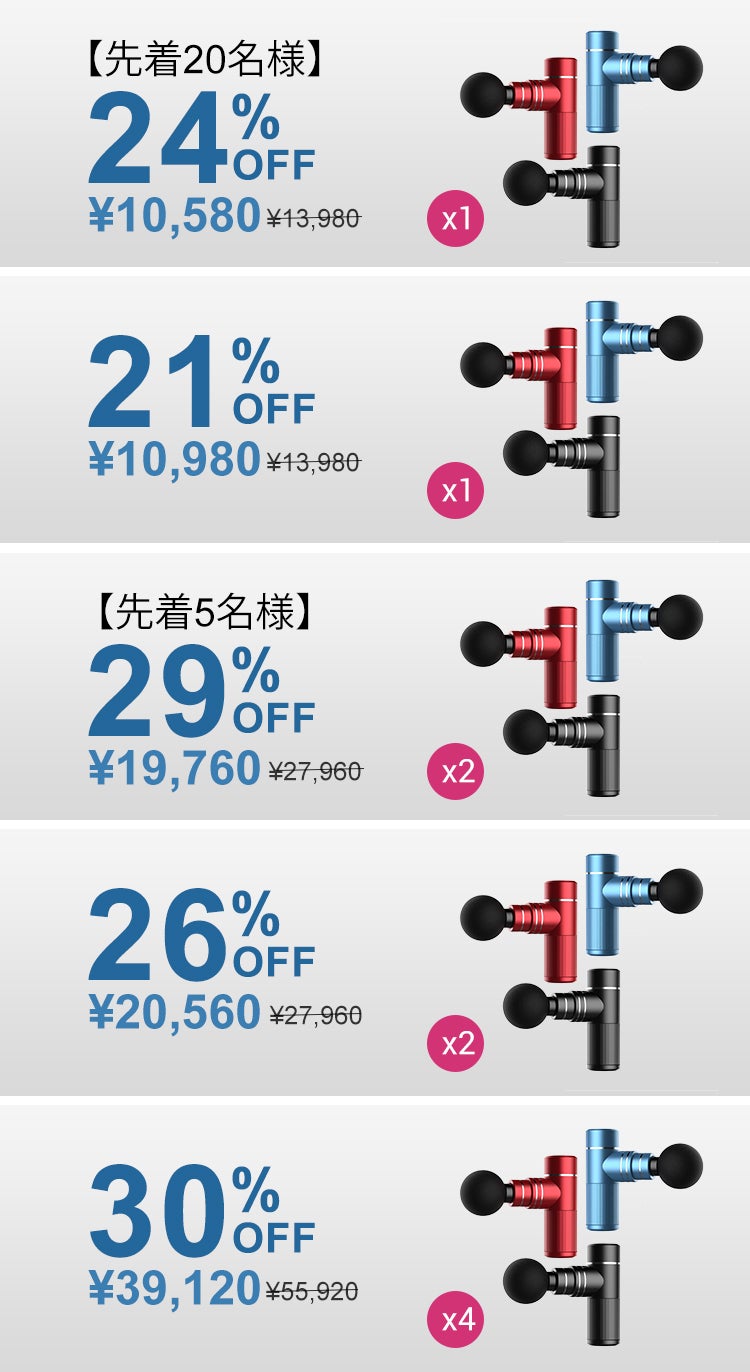 間が無くて忙しい毎日を送られているあなたは二刀流もおすすめです。半分の時間で左右をまんべんなく均等に刺激。あっという間にリセット完了です!とってもお得な2セットのリターンを選んでぜひお試し下さい。