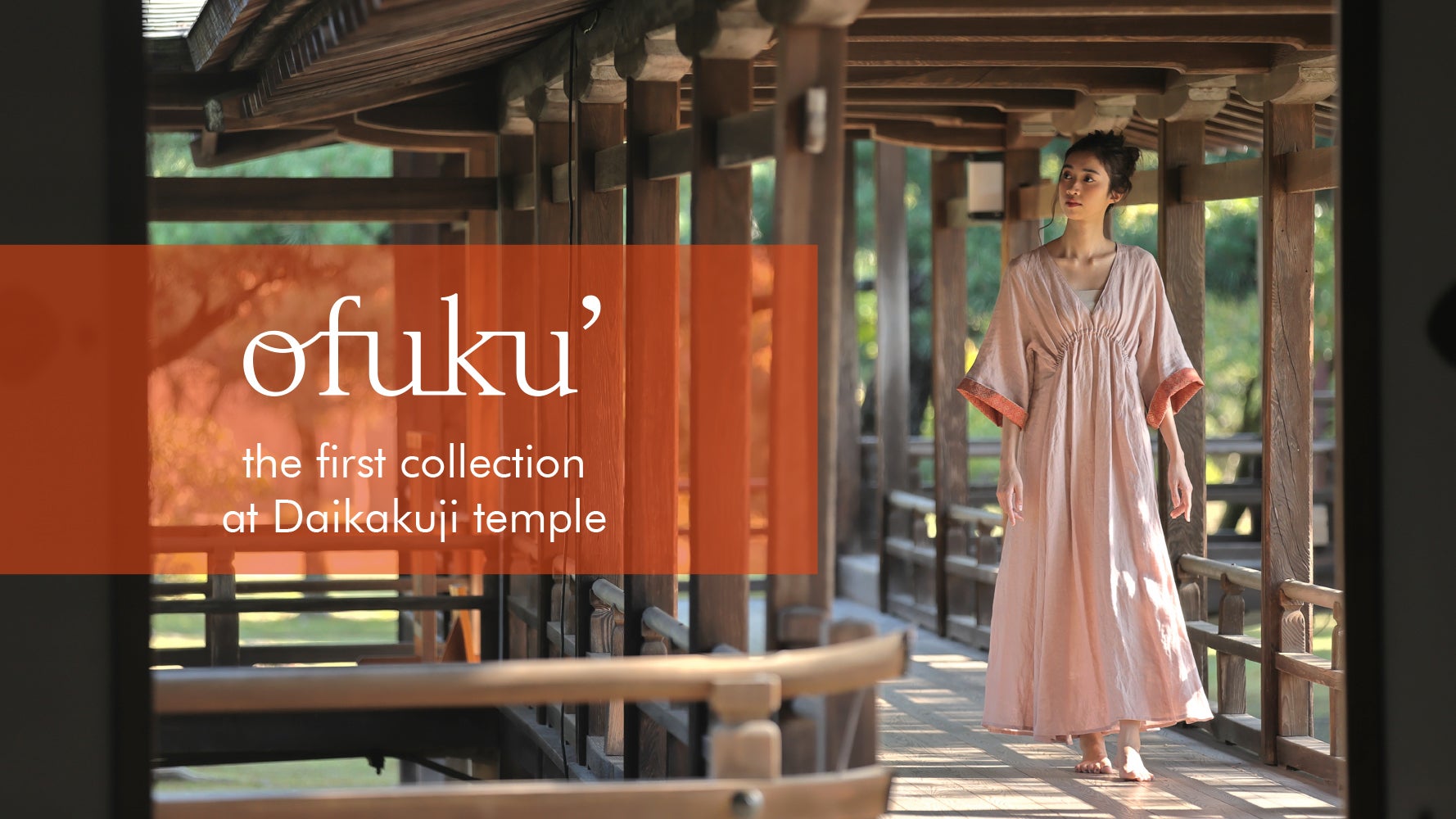 まずは美しい大覚寺を舞台に、モデルの清水彩未さんが魅せる「ofuku'」の世界をお楽しみください。
