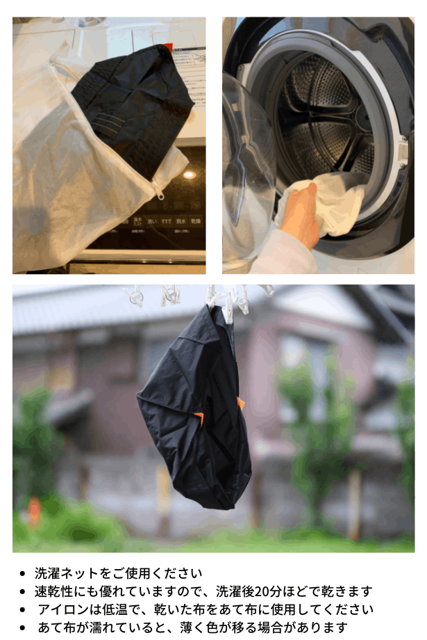 空気抵抗を受けて空を飛ぶカイト素材は、高い耐久性を持っており、さらに軽量で、濡れてもすぐに乾くので洗濯(洗濯機)も可能です。