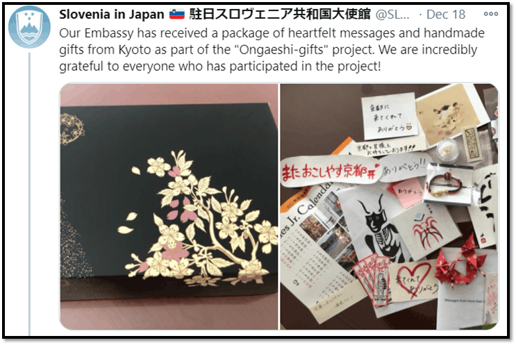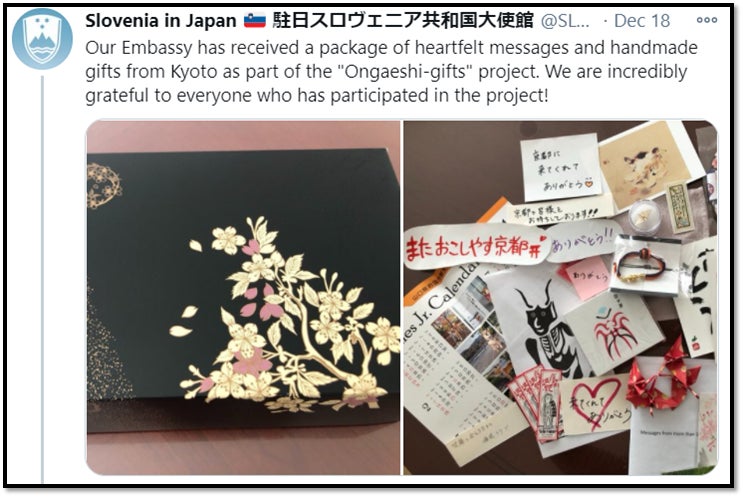 昨日に引き続き、恩返しプロジェクトで贈り物を受け取っていただいたスロヴェニア大使館が、Twitterと FBでシェアいただきました。スロヴェニアは、美しい自然に囲まれた素晴らしい国です。