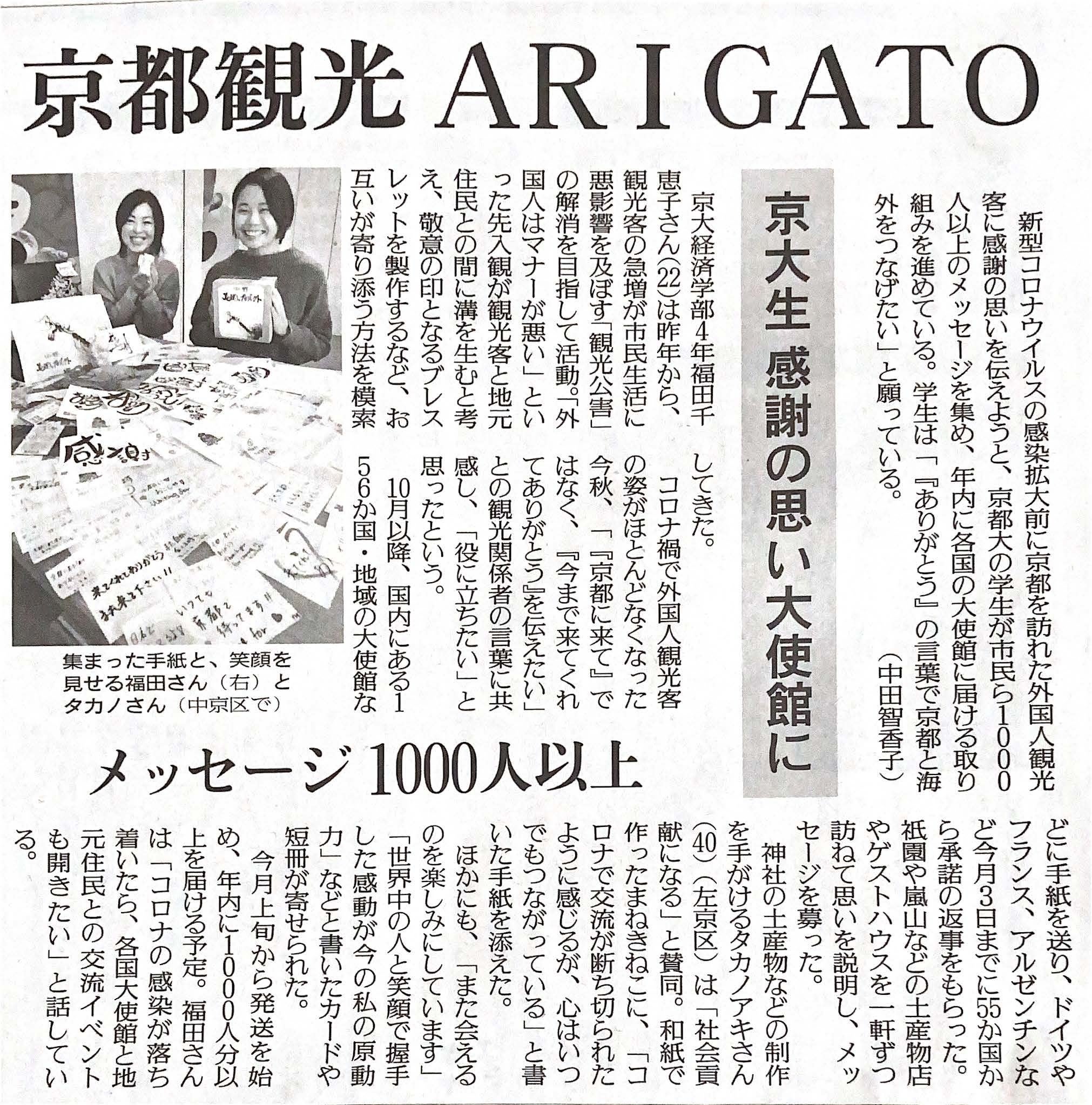 昨年の恩返しプロジェクトについて2020年12月にも読売新聞に取り上げていただきました。この頃には贈り物を送ってほしいとご連絡いただきました95の国と地域に贈り物を半分以上贈り終えていました。