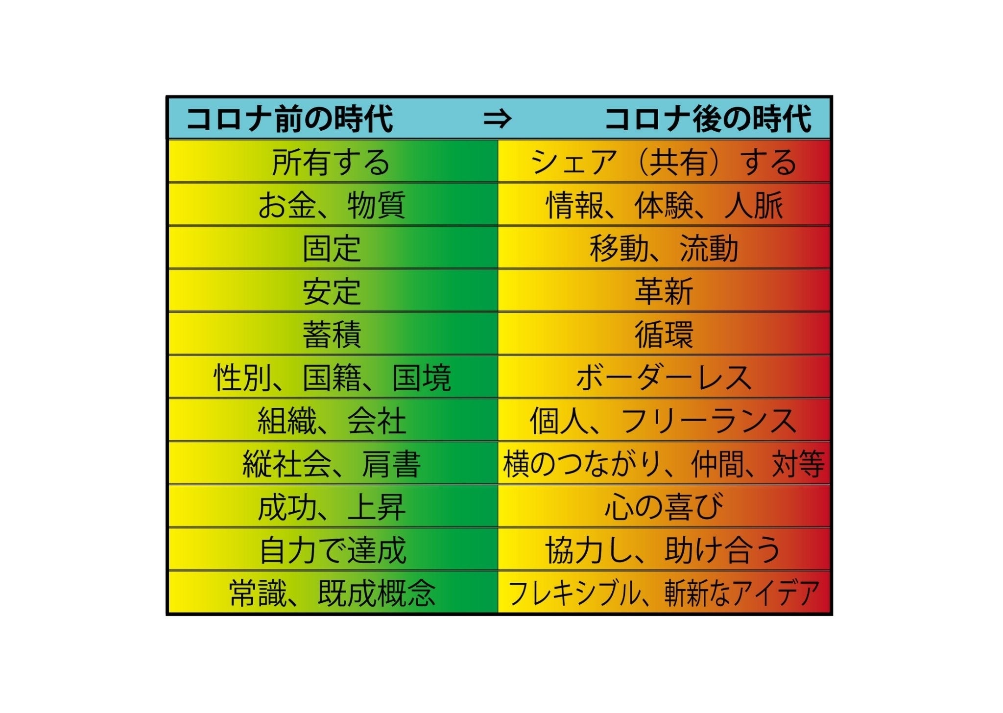 NPO法人希望の居場所の相互扶助、シェアリングエコノミー事業、そして、私の理想とする社会が、コロナ後の時代です。まさしく日本は、新型コロナにより変わっていくのです。その変化にしっかりと対応し挑戦していきます。