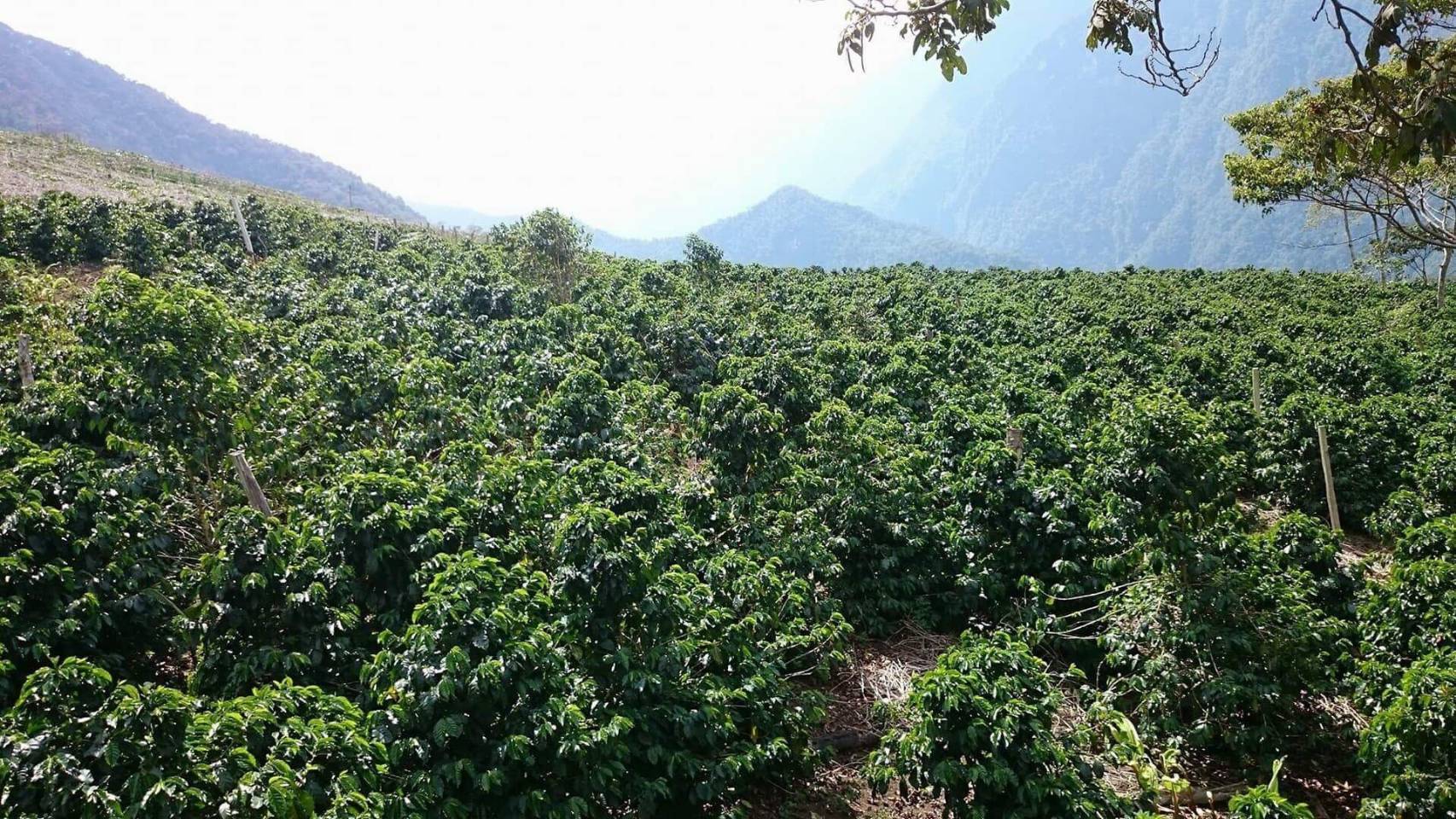 コーヒー畑の様子です。この様な山の斜面にコーヒーの木が生えています。