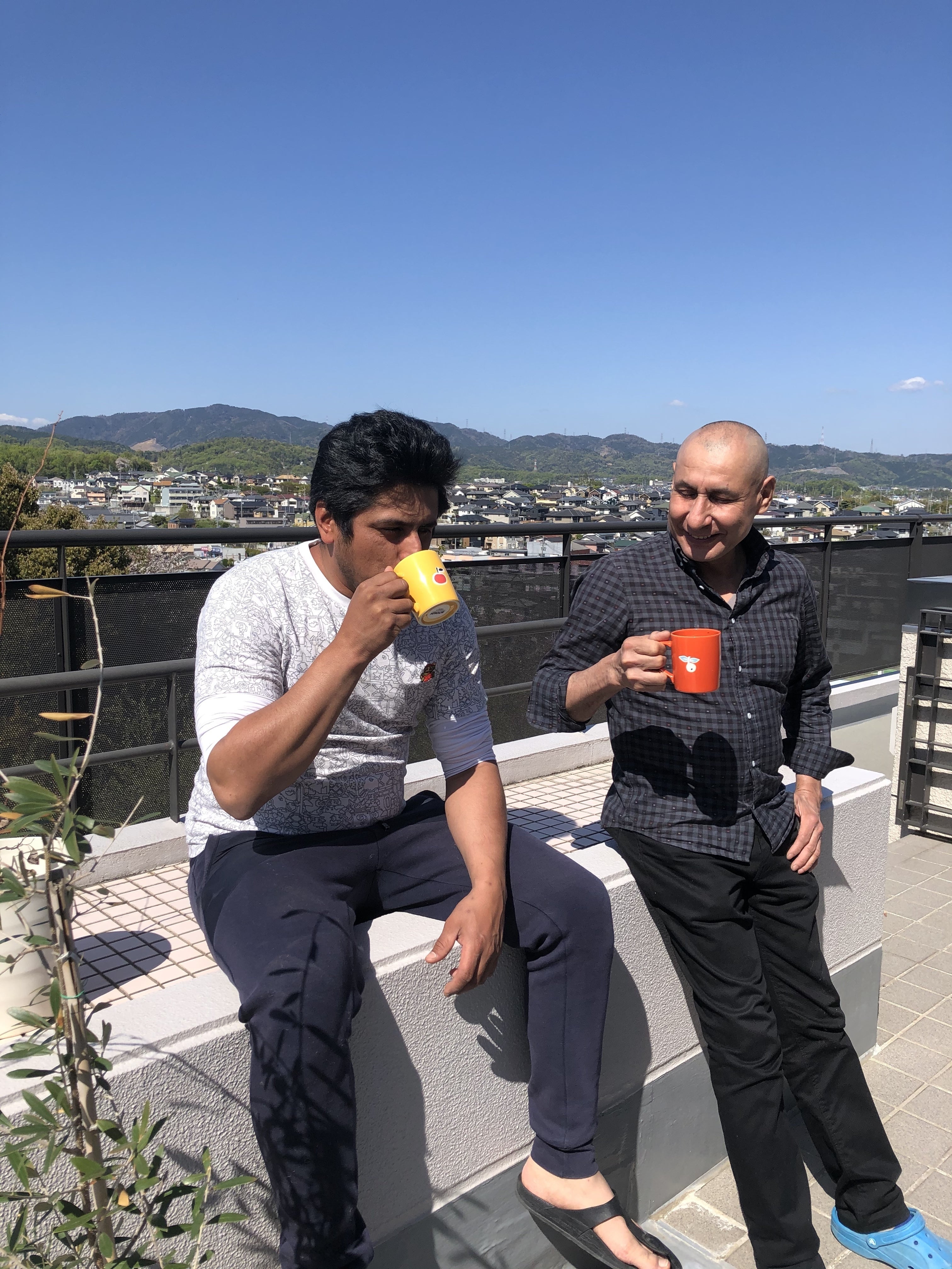 コーヒー豆の持ち主である友人(上写真向かって右の男性)と話し合いました^ ^
