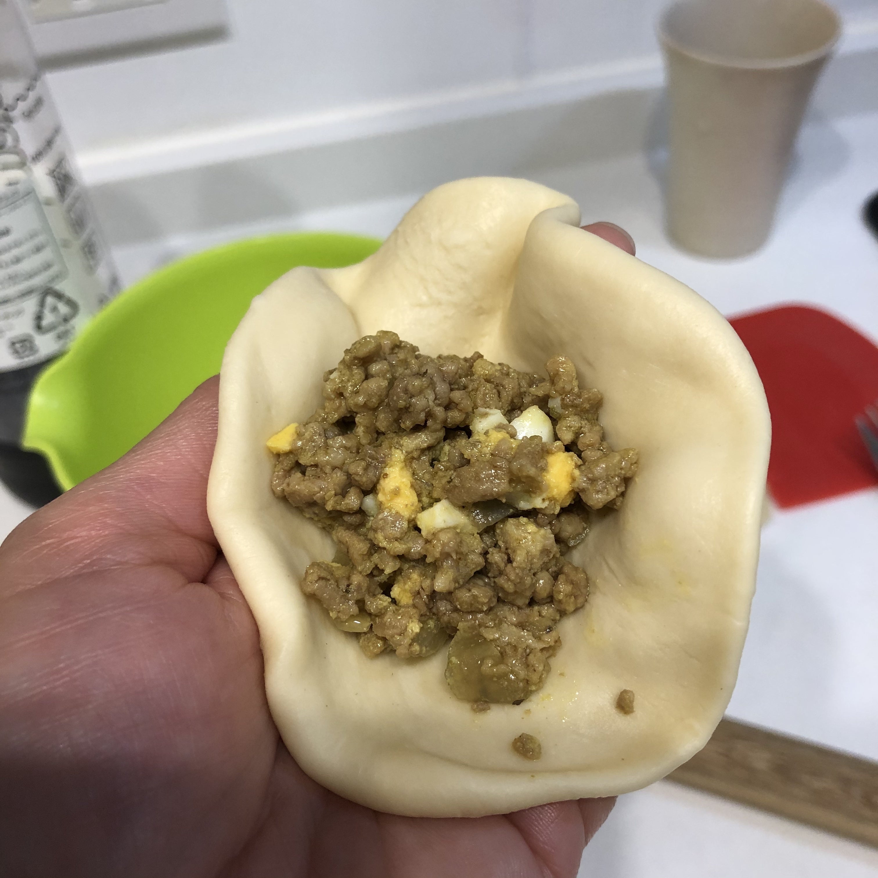 中身はスパイスの効いたひき肉が入っています( ^∀^)