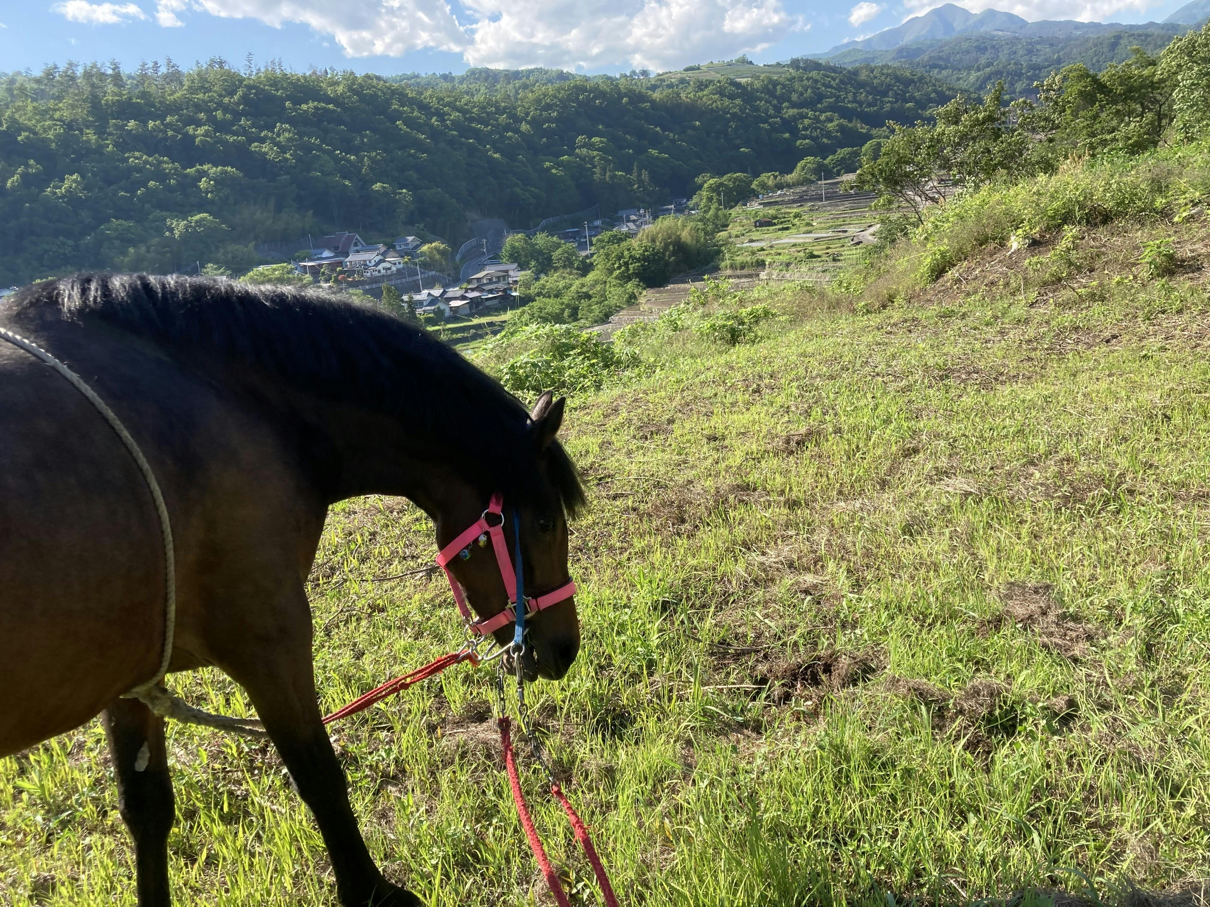 刺激を受けた私達は製作途中の馬運車に乗り亀沢(旧敷島町)にある御陵棚田のイベント会場(6月5日)の下見&調教をしに行って来ました。