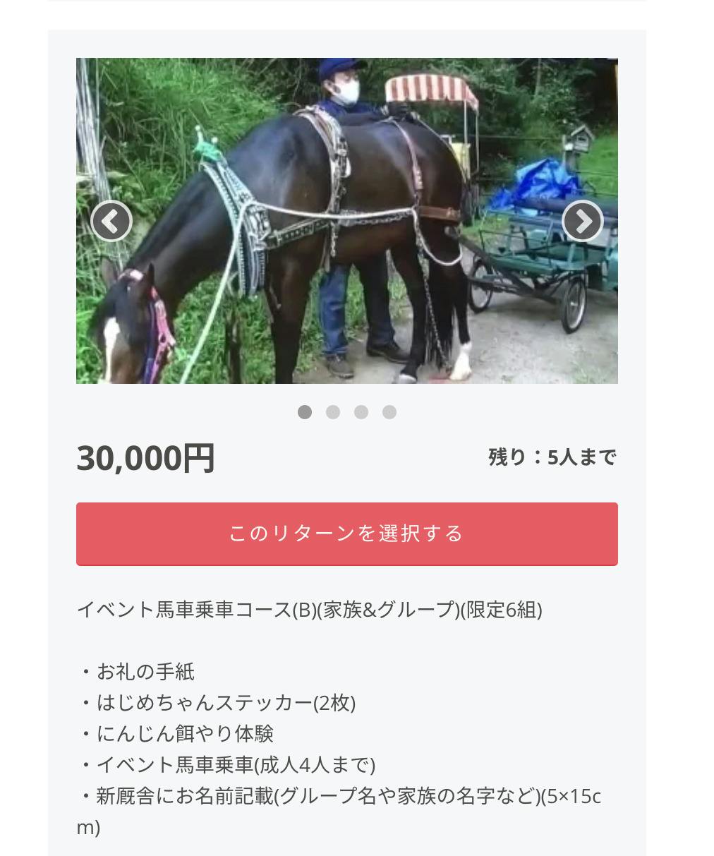 『イベント馬車乗車コース(B)(家族&グループ)』のリターンです!!