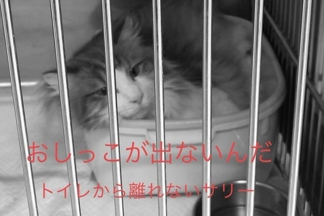 それでもオシッコがしたいのに出ないのが苦しいのでしょう、サリーは猫用のトイレの中に座り込んで出てこないのもたびたびです。