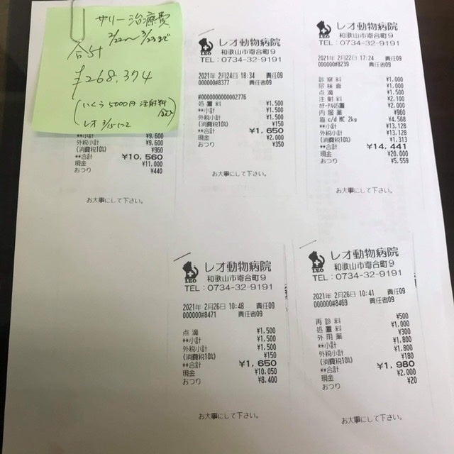 今までは作業所の所長が1日約10,000円の入院費や受診代を支払ってきましたが、それも限界にきており、手術代の捻出が困難になっています。現在、2/22〜3/23までの入院代、処置代だけで約268,000円がかかっています。