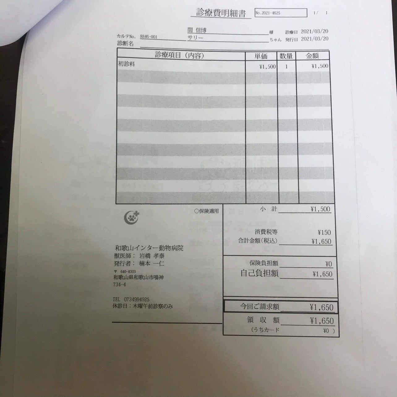 1.サリーの手術代の精算