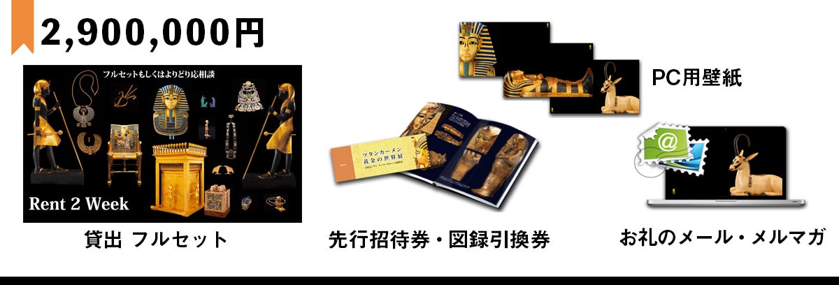 2021/05/20 18:42協賛として、応援してくださる方々を募集します!図録・展覧会イメージ図協賛の証としてお名前や会社名を展覧会フライヤー、図録などに掲載いたします。掲載希望のお名前を備考欄にご記入ください。 加えて① お礼のメール ② 活動報告とサポーター限定メールマガジン配信 ③ スーパークローン芸術作品を堪能できるPC用壁紙3枚 ⑤ 2022年の展示会プレオープンにご参加頂けます。 ⑥ 展示会図録の引換券をお送りします。 こちらも合わせてお返しします。 ーーー 画像はサンプルイメージです。実際のものとは異なります。ご支援頂いた方々、有難うございます!引き続きツタンカーメンプロジェクトではご支援をお待ちしております。 もっと見る