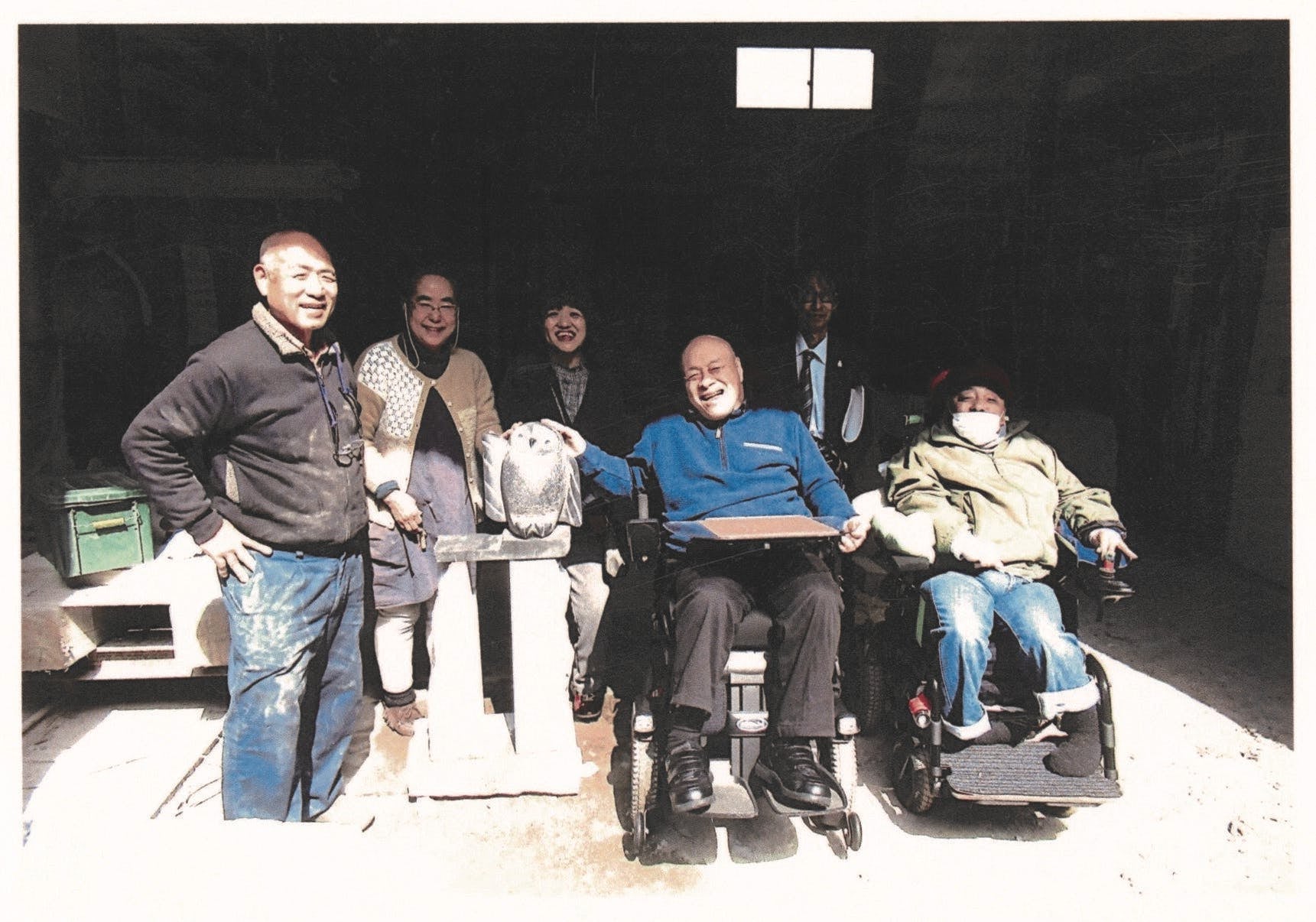 当時、氏は埼玉県の中学校で3年生学年主任を務め結婚もしていましたが、校長先生をはじめ周りの人たちの反対を押し切って愛知県岡崎市の彫刻家に弟子入りしました。その修業は過酷で、師匠の気に沿わないことがあると口も利いてもらえず、住む家は水道がないうえ騒音が激しく会話は大声でないと聞き取れないほどで、奥さんは、師匠の秘書に加えて師匠の奥さんの家事の手伝い、自動車の運転等をしていたと言います。