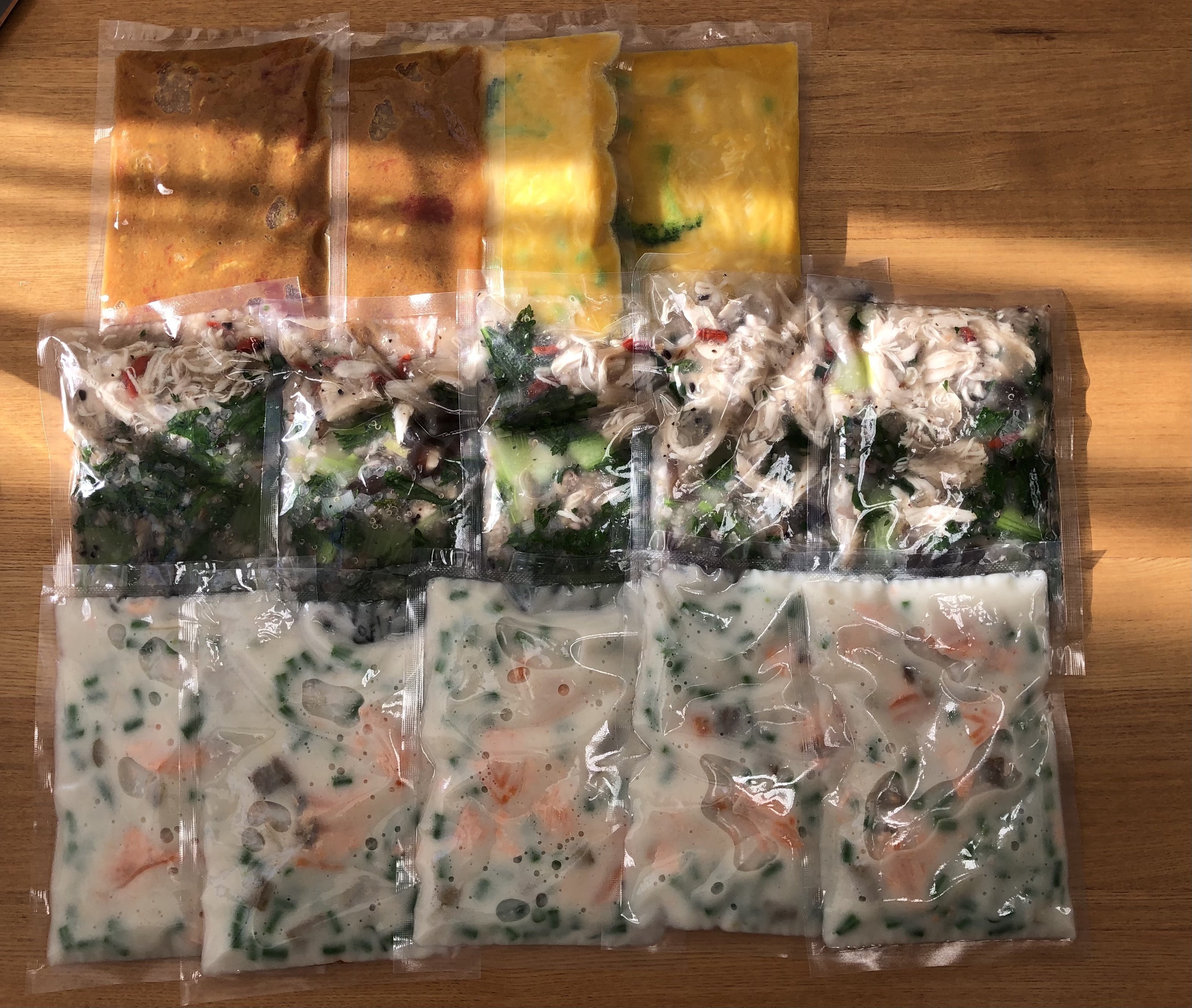 また冷凍庫のスペースを心配しなくても良いように2回に分けて配送するコースもご用意しました。ひとつのサイズは横15×縦19×厚さ1~2センチです。