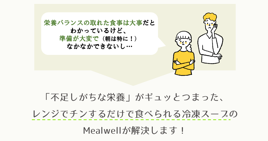 朝早く起きるきっかけとして週1回MEALWELLを取り入れて、その日は早起きをしてきちんと朝食を摂るという習慣取り入れるのはいかがでしょうか?充実した朝の気分の良さを実感してみてください!