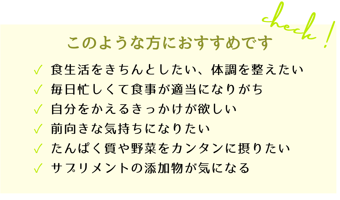 特に1日のはじまりである朝の習慣を変える事で1日の生活リズムが自然と整い、体調やメンタルも良くなり1日が充実したものに生まれ変わります。思った通りの1日が過ごせると気分やモチベーションが上がり、自然と今までは継続できなくてモヤモヤしていた目標などにも前向きに取り組むことができるようになっていきます。MEALWELLで「習慣を変える」をはじめましょう!
