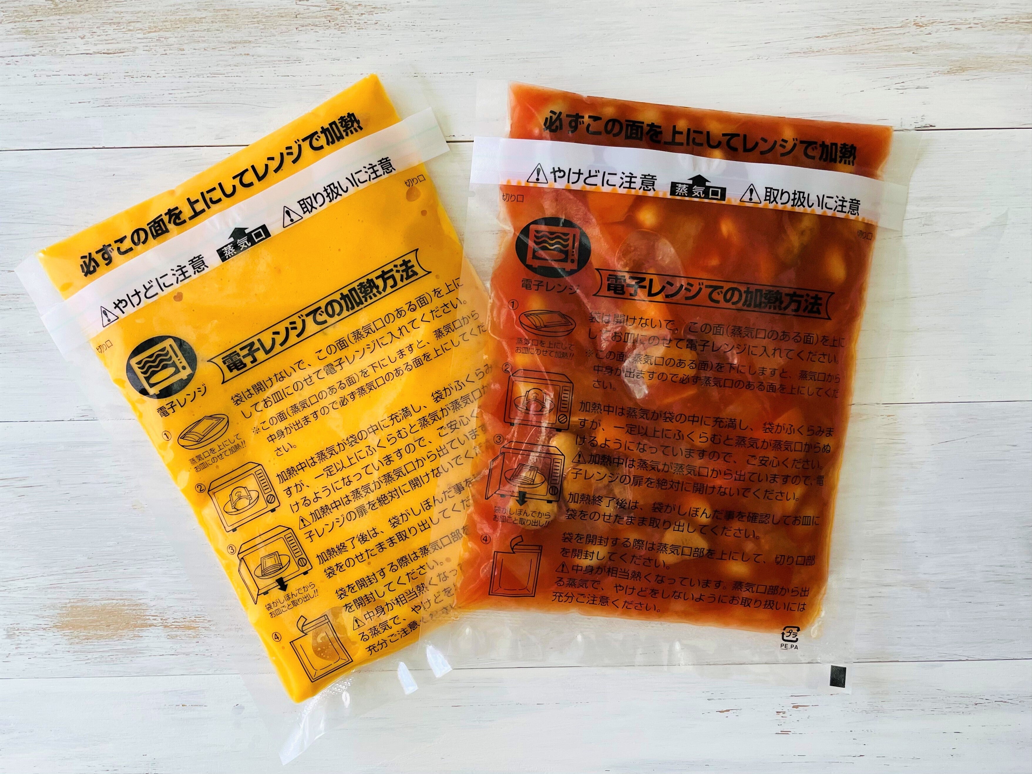 そのままレンジに入れて加熱できる専用パッケージを使用しています(湯せんも可能です)
