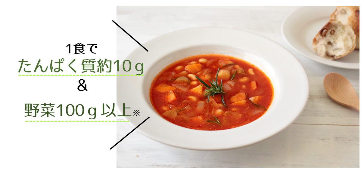 スープにお好みの主食をプラスして召し上がって頂くことで、不足しがちな栄養が手軽にとることが可能となります。