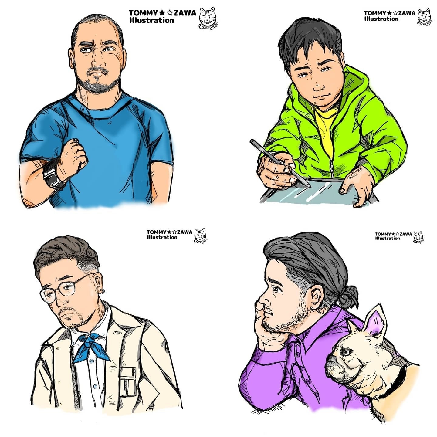 はじめまして。SNSを中心に、イラストや似顔絵を描いている、【TOMMY★☆ZAWA】 と申します。教育関係の仕事や革製品の販売接客を通じて、「人と接する仕事」を元々しておりました。元々教材を作ったり、デザインで絵を描いていた経歴があります。