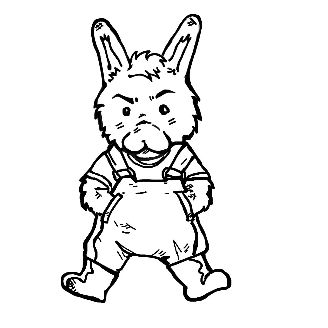「カントリーくん。」牧場で、働いているおしゃれなうさぎのイメージで描きました。