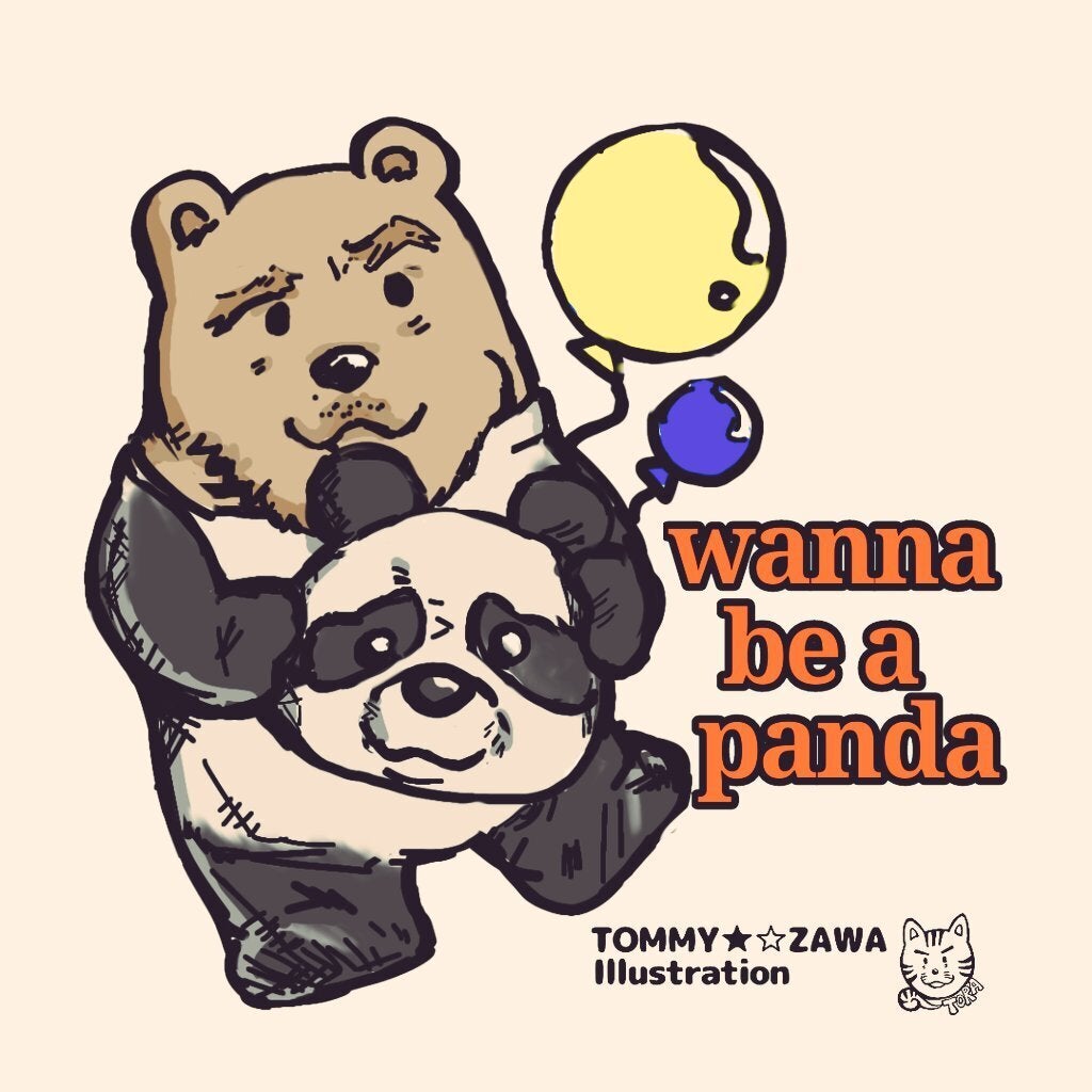 「~になりたいボーイ」シリーズというイラストを描いていて、その番外編です。「パンダになりたい、ベアー。」遊園地で、バイトしている熊です。