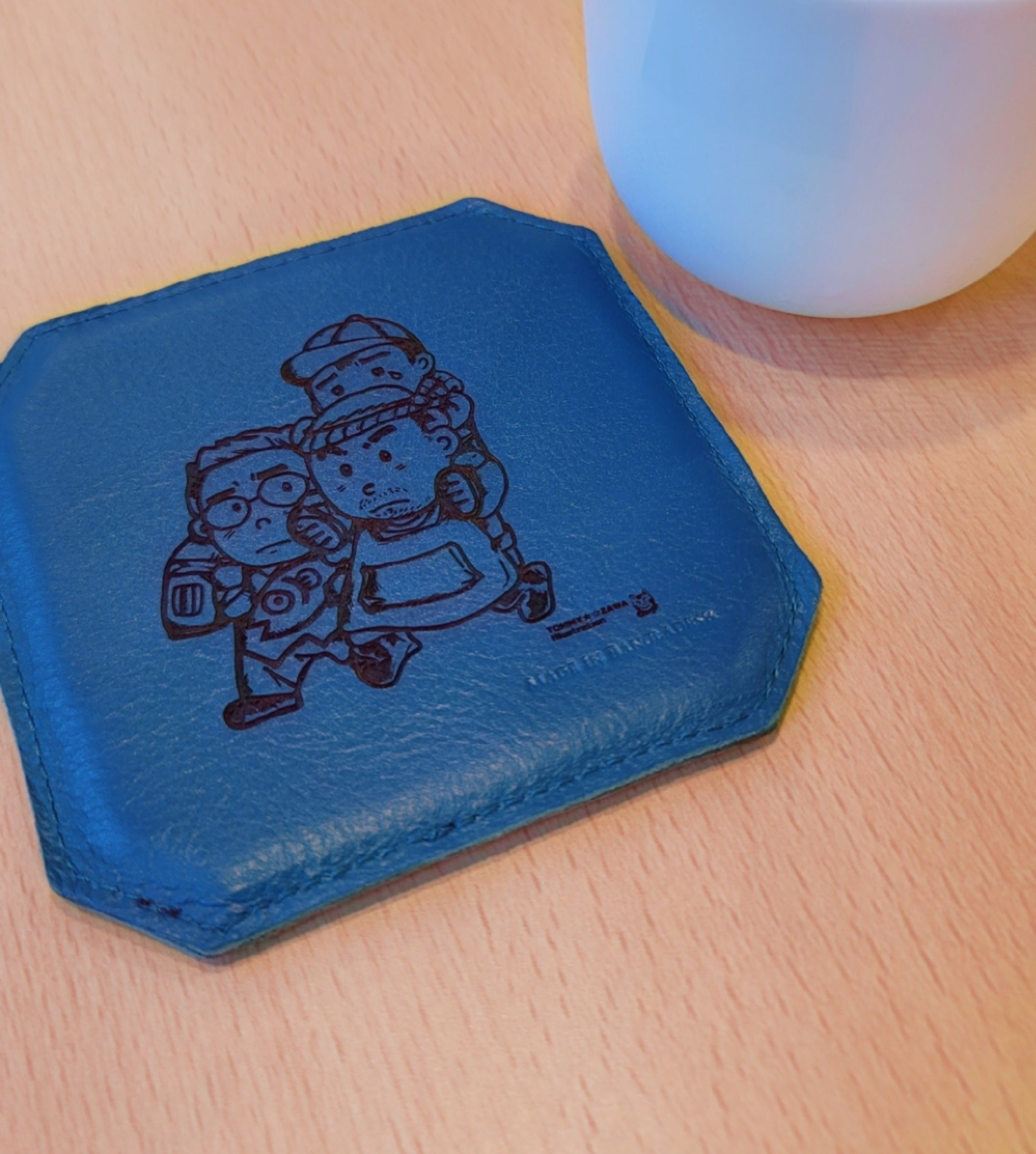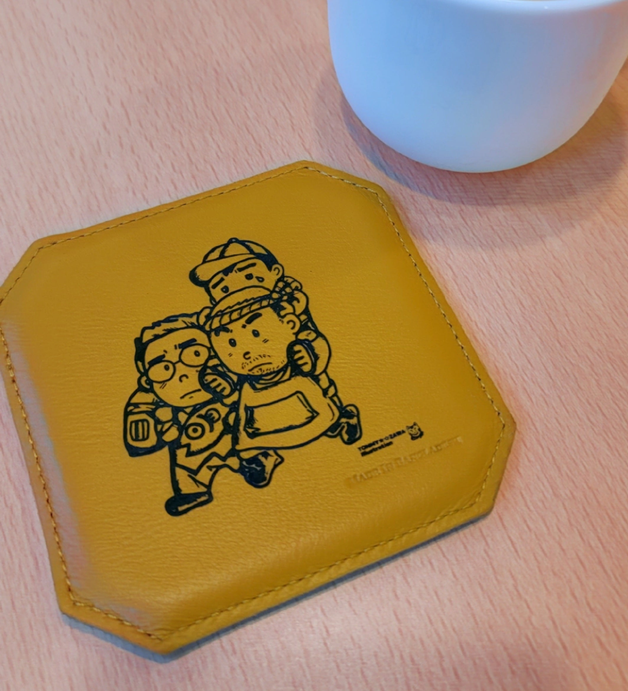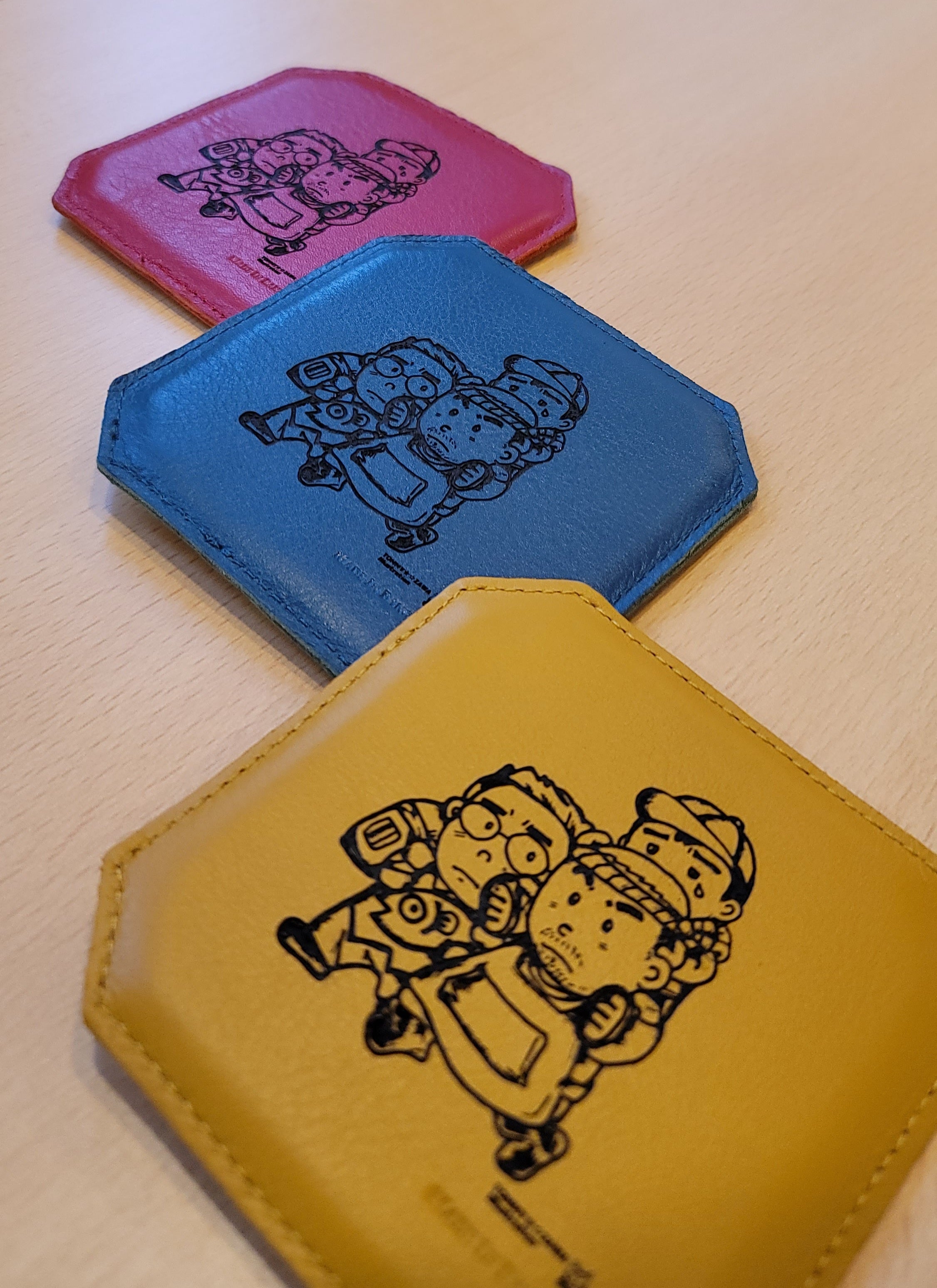 赤青黄の、【三兄弟カラー】の、牛本革のコースターです。