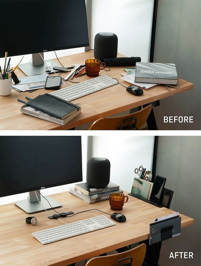 デスク周りの収納において、きっちり隙のなく整った環境にするより、「自分らしく、自分好みの」環境に仕上げる事で仕事効率が上昇する。落ち着ける雰囲気だったり、心地よい空間が集中力アップに繋がるのは、当たり前のようで、見逃しがちだったポイントかもしれません。そこで、多くのデスク収納製品が「収納力」に重点を置いている中、私達は「いかに自分らしさを表現できるか」という点にデザインの重点を置きました。