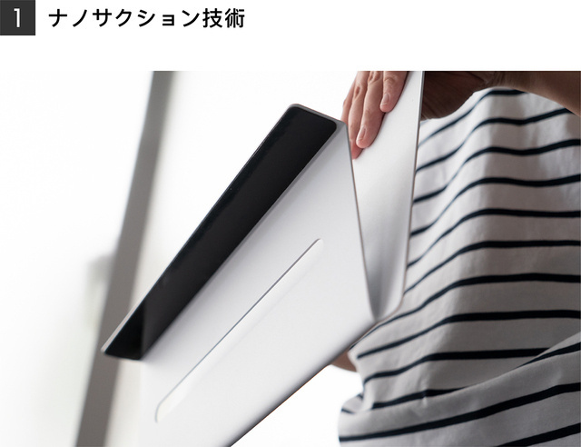 表面に何百万個ものミクロな吸盤を持ったナノサクションパッドを採用。