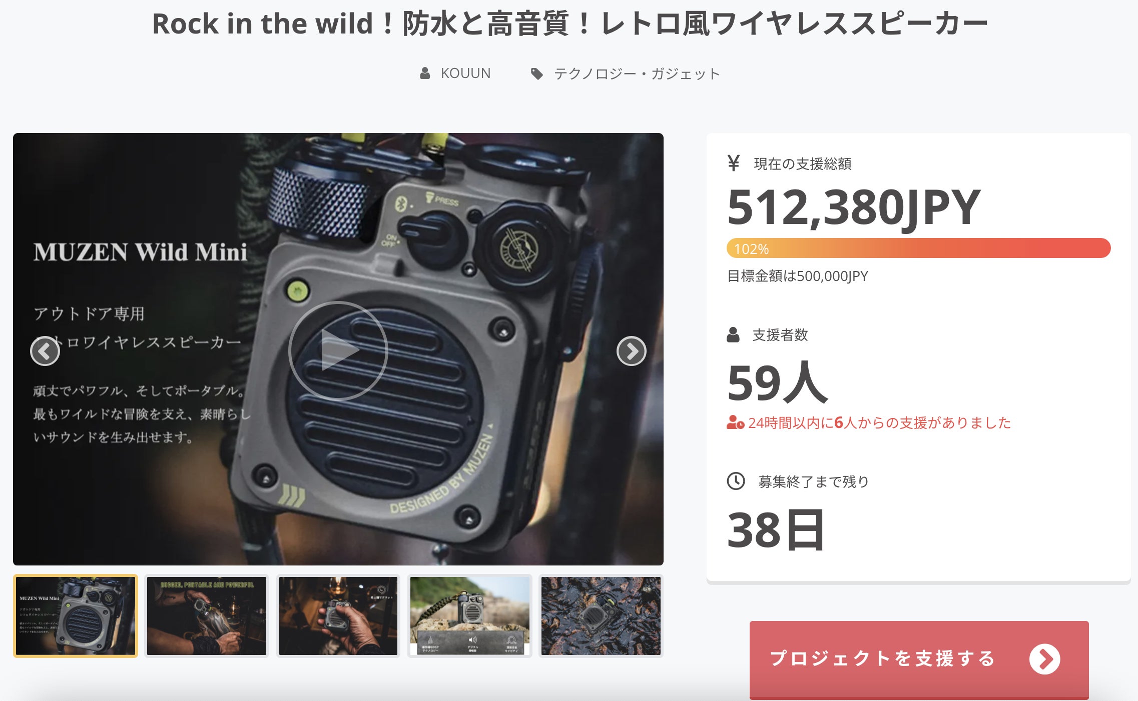 皆様のご期待に沿える良い製品がいち早くお手元に届くよう、今後もチーム一同頑張ってまいります!なお、プロジェクトは残り38日間ですが、今よりも多くの方に「MUZEN Wild Mini」の魅力を知っていただくために、当キャンペーンをSNSなどでお友達等にご共有いただければ幸いです。