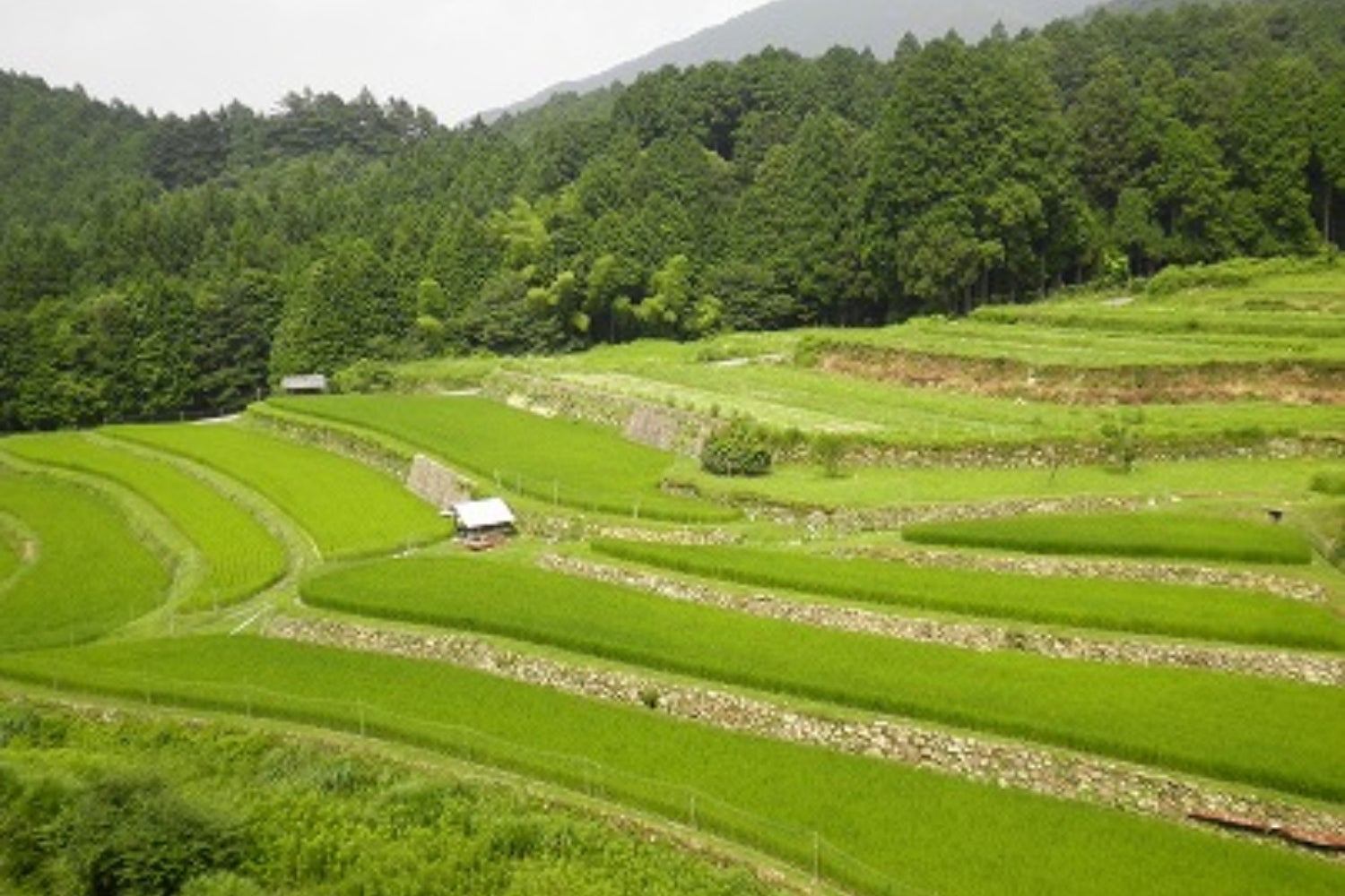 棚田は、山の斜面や谷間の傾斜地に階段状に造られている水田です。