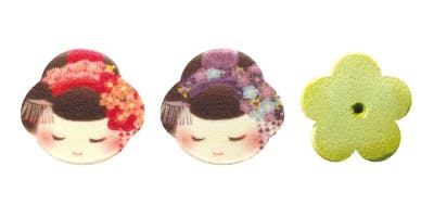愛らしく頬を染める舞妓さん2種と、抹茶味のお花のセットです。