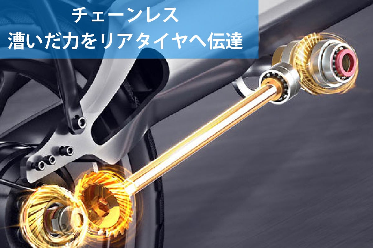 Point1.【チェーンレス・衣類巻き込み防止】小さな車体で大きな走行パワー。チェーン不要の美しいデザイン。